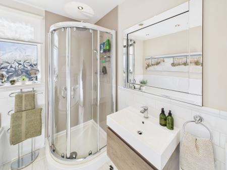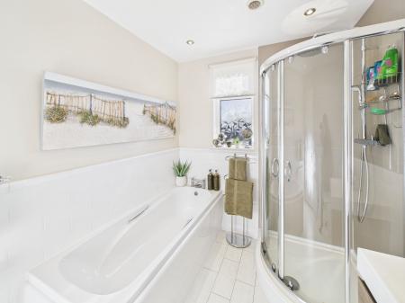 - Large Bathroom with Three Piece Suite and Additional Corner Shower Cubicle.