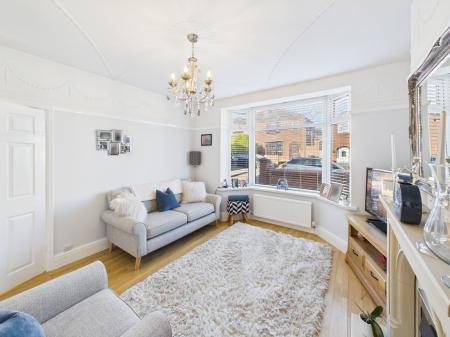 - Cosy Living Room with Stone and Marble Fireplace and Bay Window.