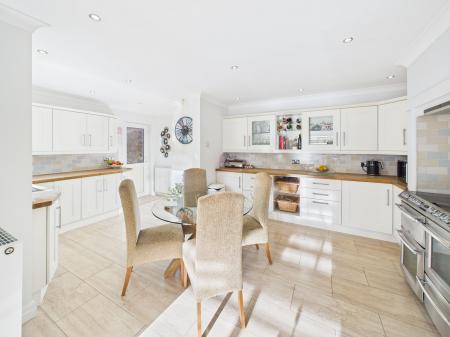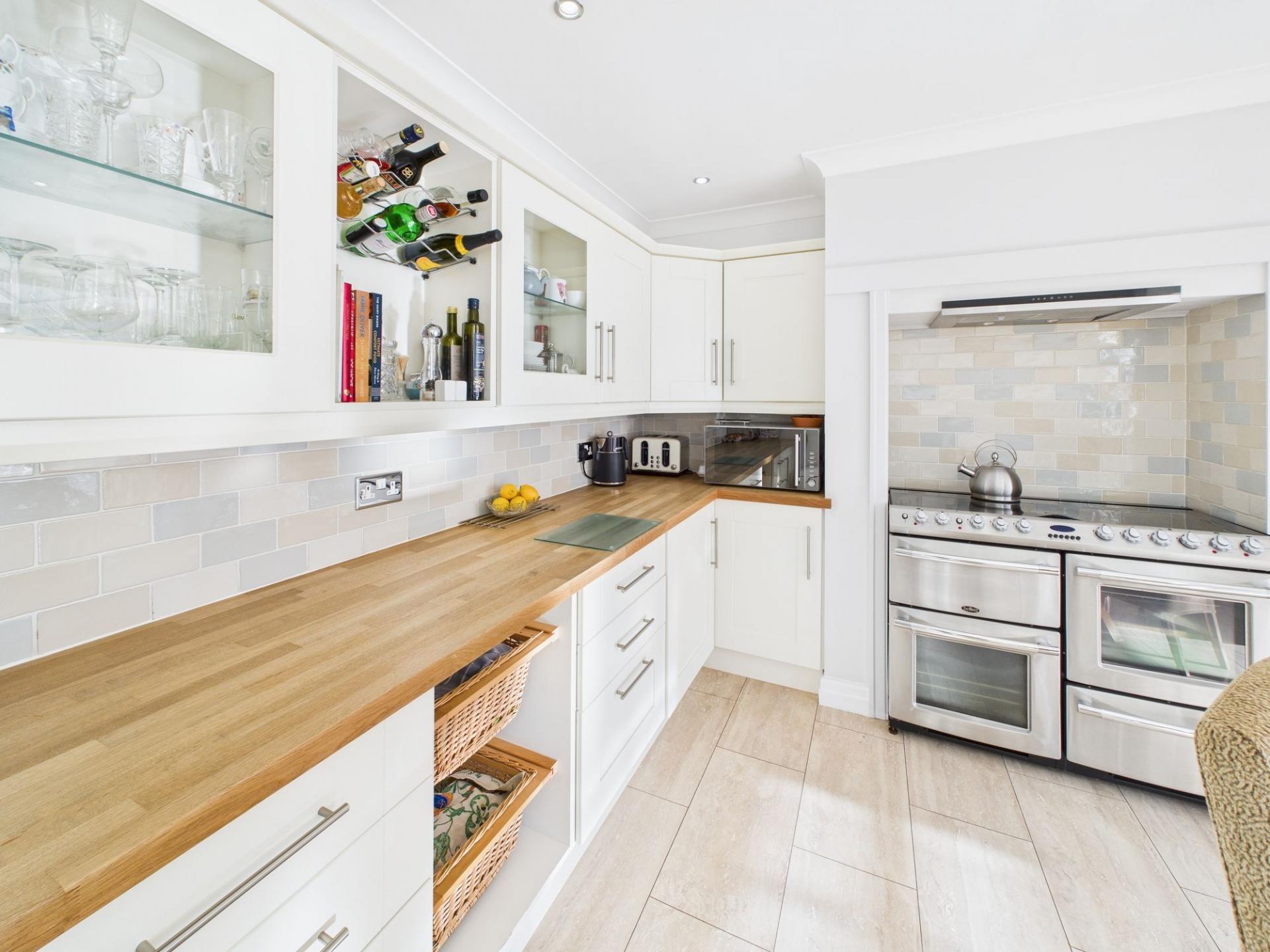 - Large Cottage Style Kitchen with Oak Worktops and Integrated Appliances.