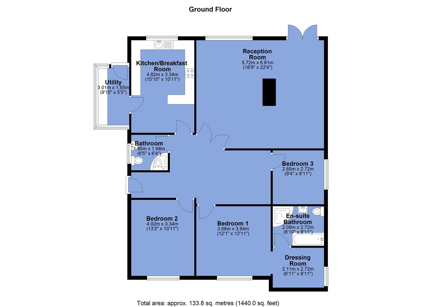 - Two interconnecting reception areas overlooking the rear garden