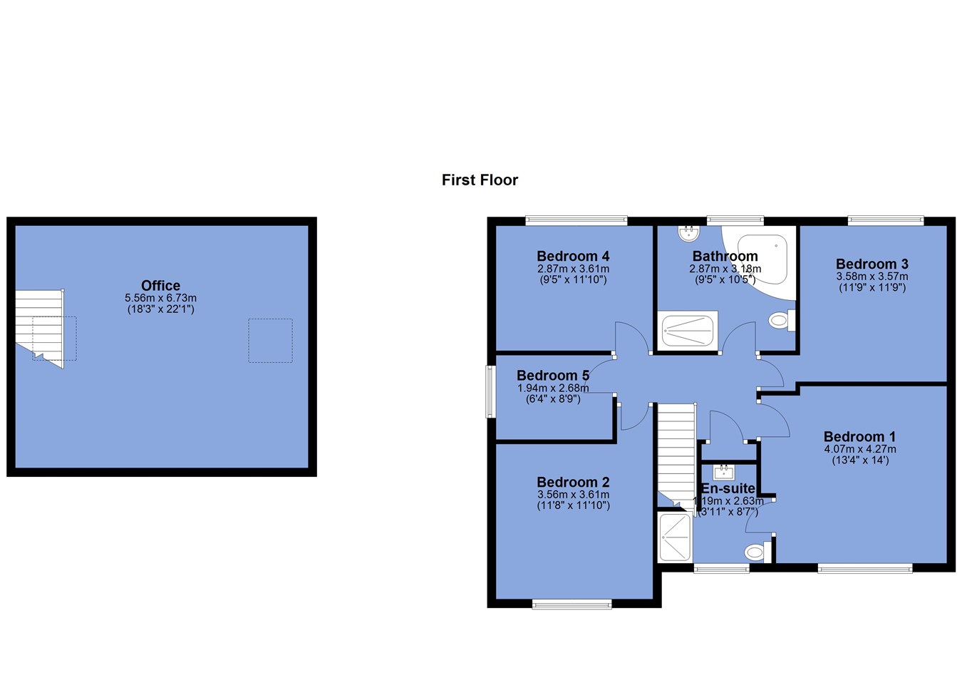 - 5 generous bedrooms, 4 being particularly impressive