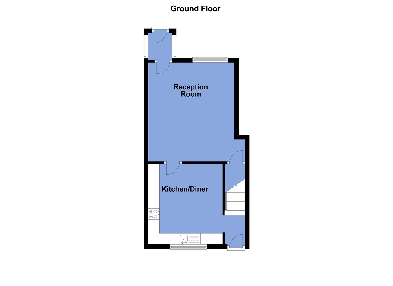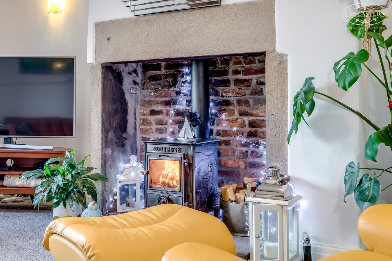 14' 4" (max to the alcove) x 14' 6" (4.37m x 4.42m) Log burner. Feature fireplace and hearth. Excellent views through the rear window. Understairs storage.