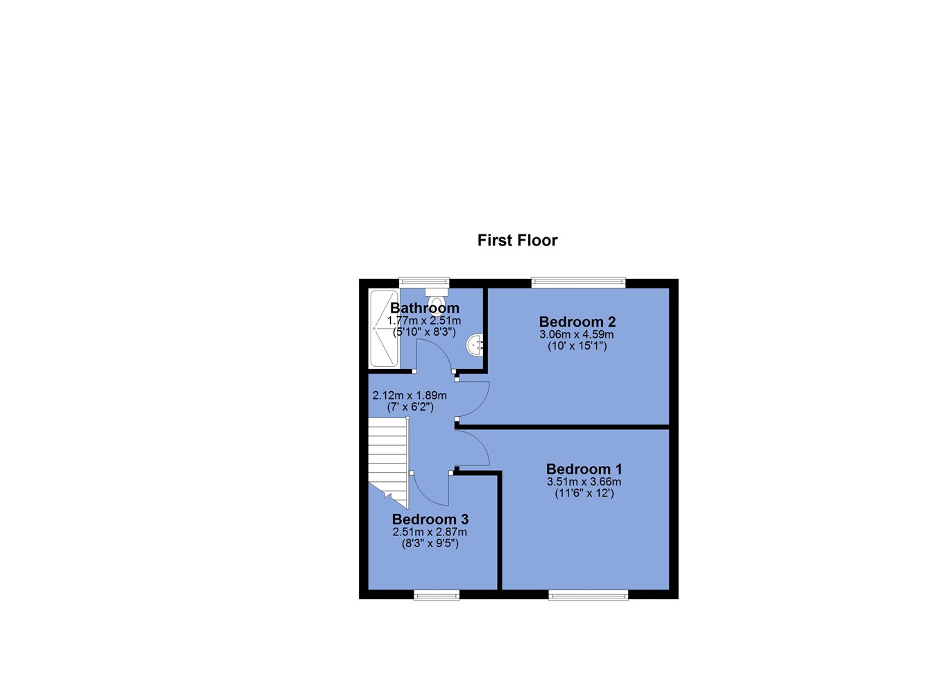 - Three first floor bedrooms and two individual reception rooms