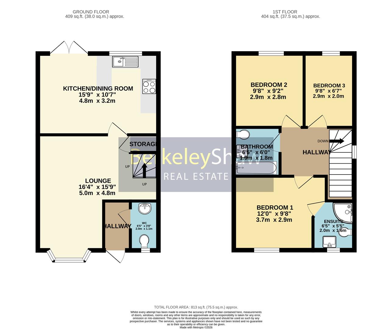 Upstairs, the master bedroom boasts a modern en-suite shower room, while the stylish family bathroom includes a full-size bath and was re-fitted 3 years ago. There is a second well-proportioned double bedroom and a third single bedroom, ideal for a home office, nursery, or guest room.