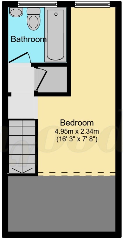 To the first floor is a semi open plan bedroom with front aspect window and bathroom with a three piece re fitted suit.
