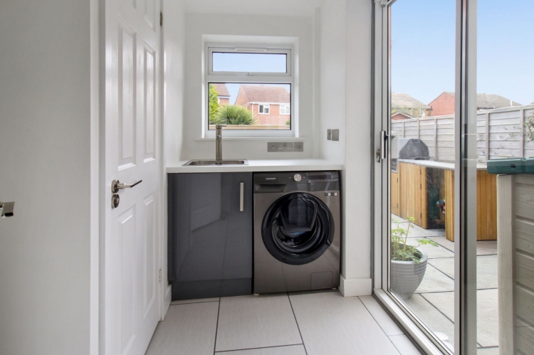 Leading from the dining area is the unique feature of the utility room with incorporated cloakroom. There is a fitted unit with sink and space for washing machine within the utility and access to the garden and to the garage. The cloakroom offers a WC and basin.