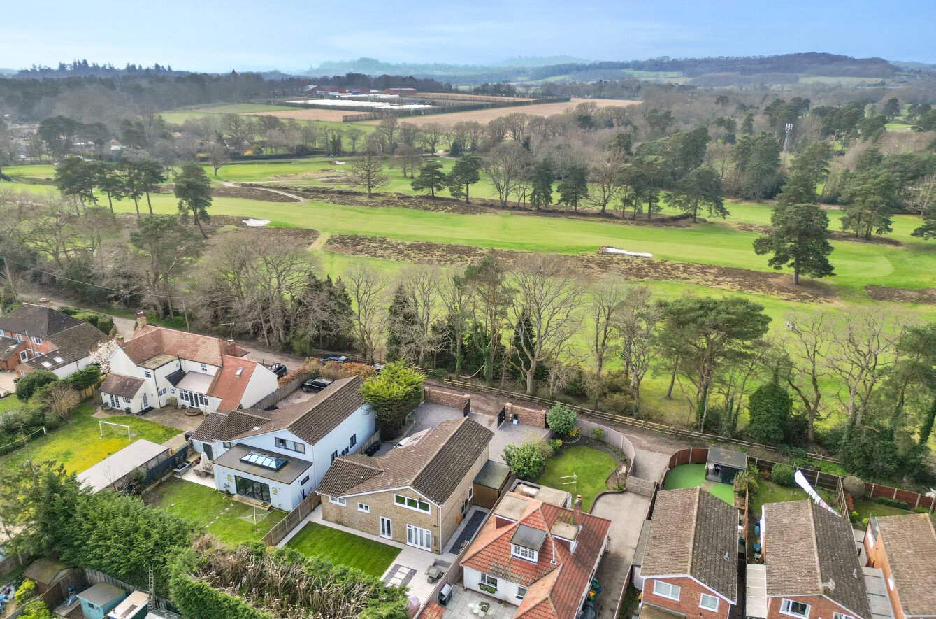 Exceptional modern family home, extended and renovated to the highest standards in a generous gated, level plot which sits at the end of a quiet lane adjoining Blackmoor Golf Course.