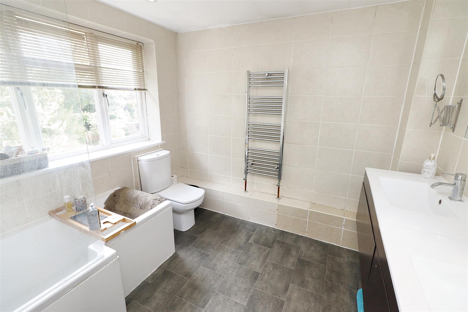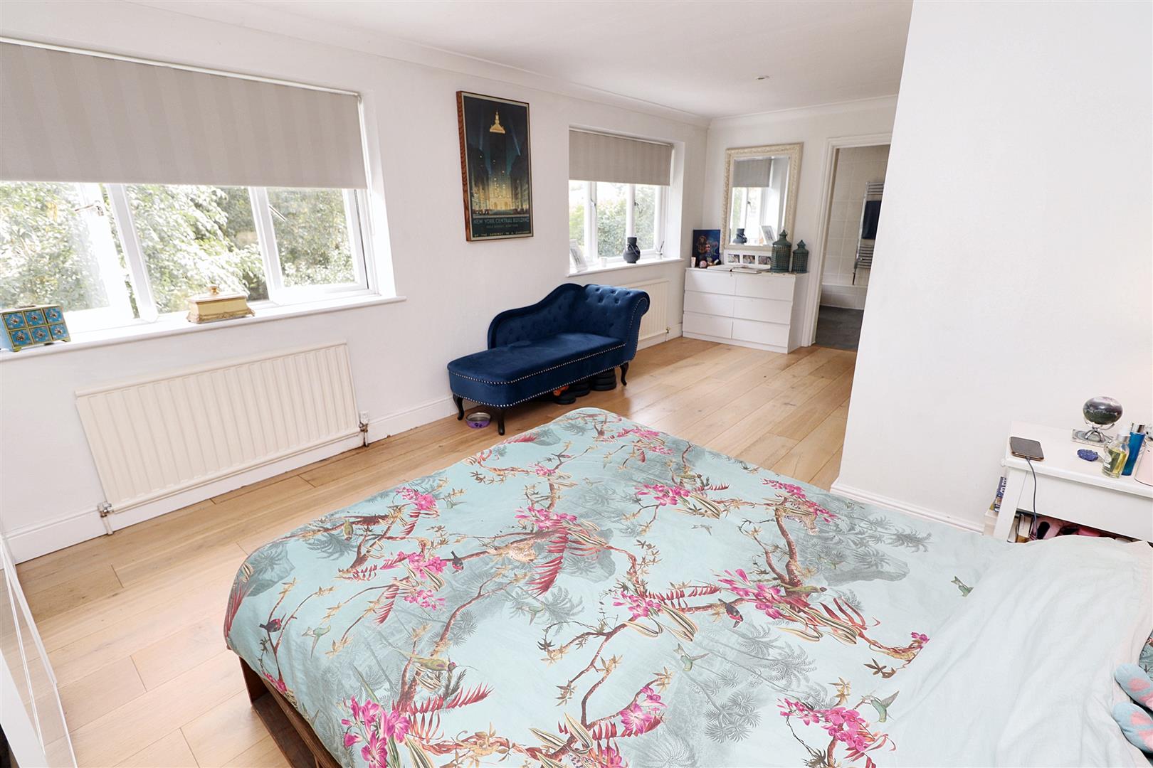 Upstairs, what was originally a four-bedroom layout has been thoughtfully reconfigured into three large double bedrooms, each offering ample storage and natural light. The principal bedroom benefits from its own private en suite, while the remaining rooms are served by a modern, fully tiled family bathroom.