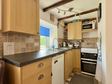 2 UPVC double glazed windows to front. A modern fitted kitchen with a good range of wall and base cupboards with drawers and worktops over. Stainless steel sink with drainer. Space and power for cooker. Space and power for fridge. Feature window seat. Woodburning stove set on slate hearth. Storage cupboard. Modern Dimplex Quantum heater.