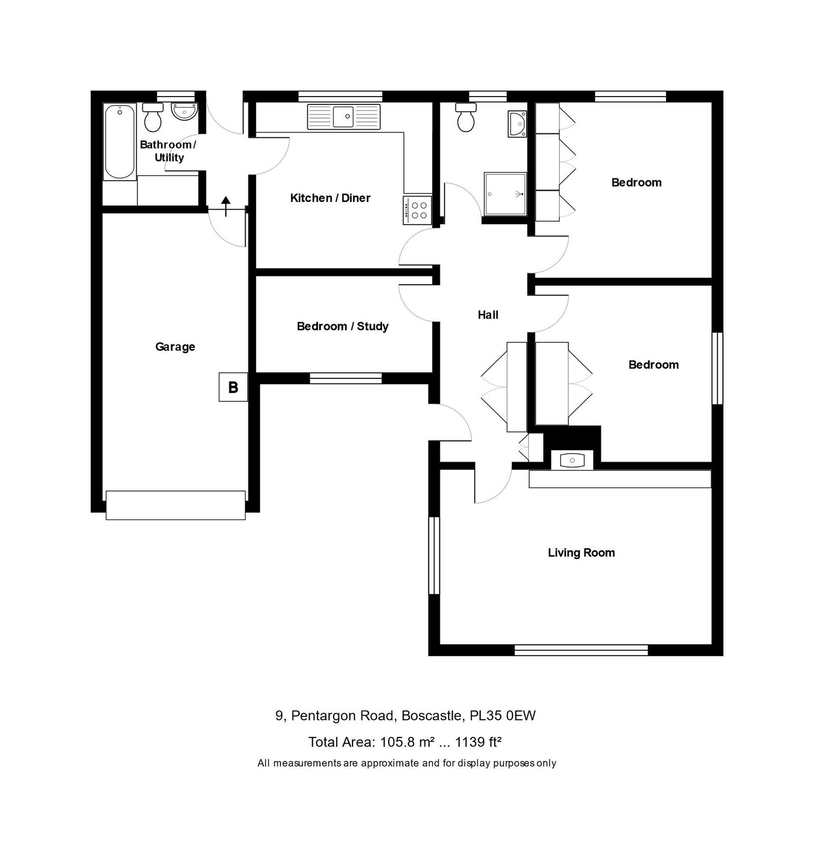 Quietly located enjoying the most wonderful views at the rear across a small field towards Forrabury Church and the coast, 9 Pentargon Road is a particularly well presented detached bungalow which benefits from LPG heating and UPVC double glazing. Offering a light dual aspect 5.4m lounge with feature woodburner, there is also a super kitchen/dining room from where one can enjoy the lovely views at the rear. With 3 bedroom accommodation, the property also has a bathroom and separate shower room together with attached garage and driveway at the front. The gardens at the rear are a particular feature offering a great degree of privacy as well as backing onto the meadow at the rear from where one can again enjoy the lovely outlook.