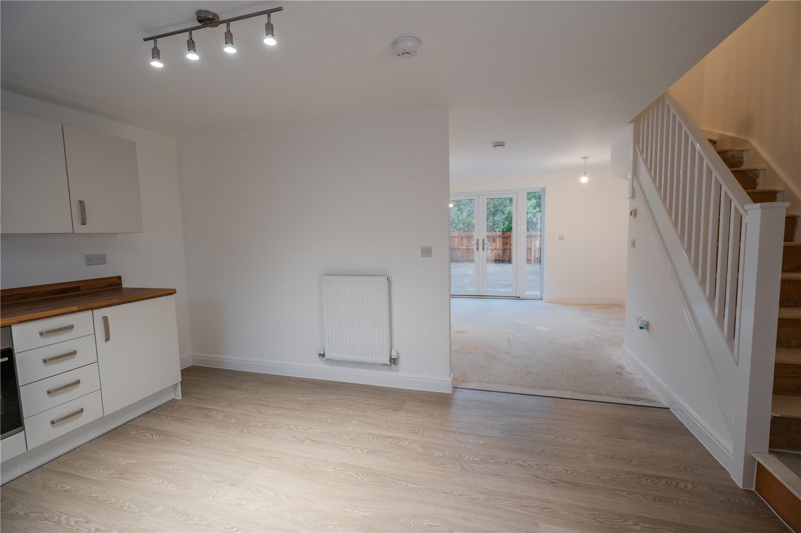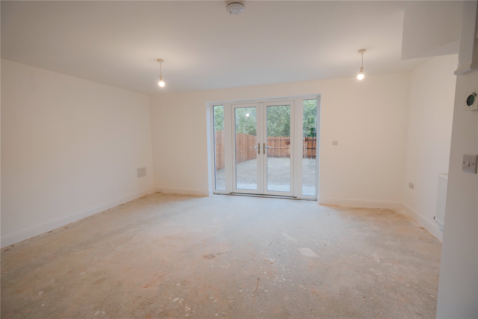 - Spacious living room with French doors to garden