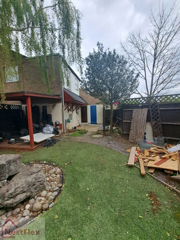 Enclosed by fencing. External storage cupboard. Artificial lawned area with central rockery feature. Variety of shrubs and borders Outside Tap Gazebo over decking area. The outside area does need a bit of tidying up
