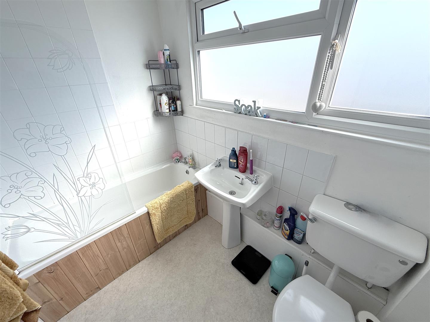 Bathroom - 2.46m x 1.70m (8'1" x 5'7") - Having a three piece suite comprising tongue and groove effect panelled bath with chrome taps, glass screen and wall mounted shower, WC and pedestal washbasin; tiled splash backs and double glazed window