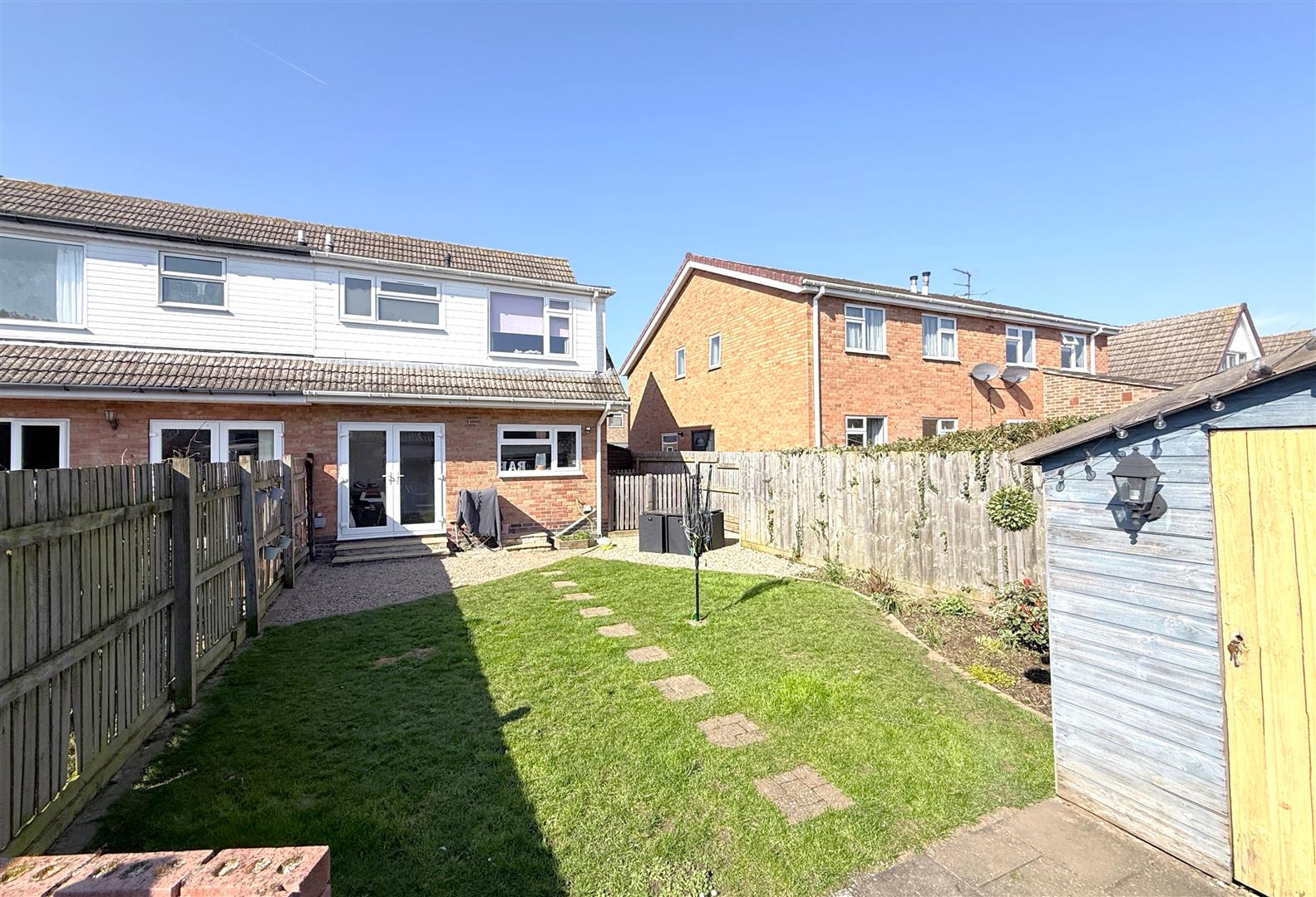 Exterior - The property is set back behind an open plan frontage partly laid to lawn adjacent to which is a tarmacadam driveway providing off road car standing and a pathway leading to the front door. A timber courtesy gate gives access into a side courtyard area with a storage shed and, in turn, leads out into the main, enclosed, rear garden with an initial gravelled seating area leading onto a central lawn. A block set pathway continues to the foot of the garden where there is a further paved terrace and timber storage shed.