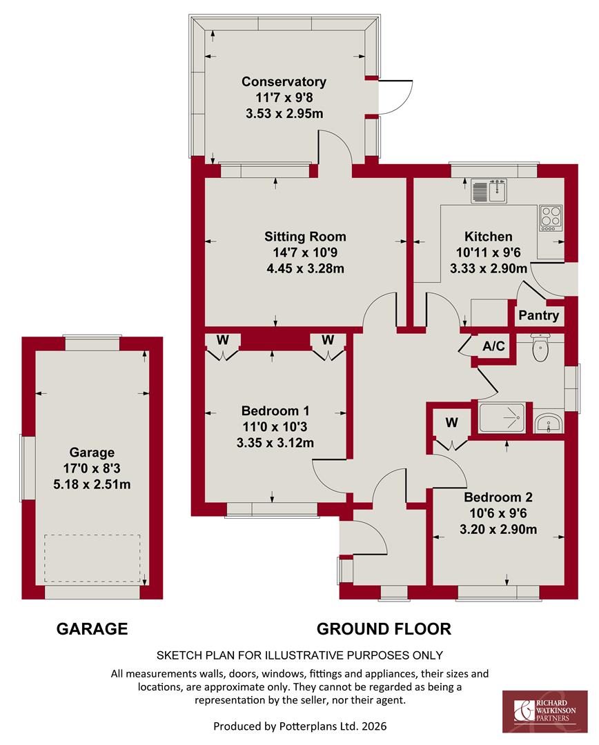 Internally the property offers a versatile layout comprising an initial entrance porch leading through into a central L shaped hallway and, in turn, the main sitting room which links into the useful addition of a conservatory at the rear. The fitted kitchen again benefits from a pleasant outlook into the rear garden. In addition the property has two double bedrooms and a shower room.