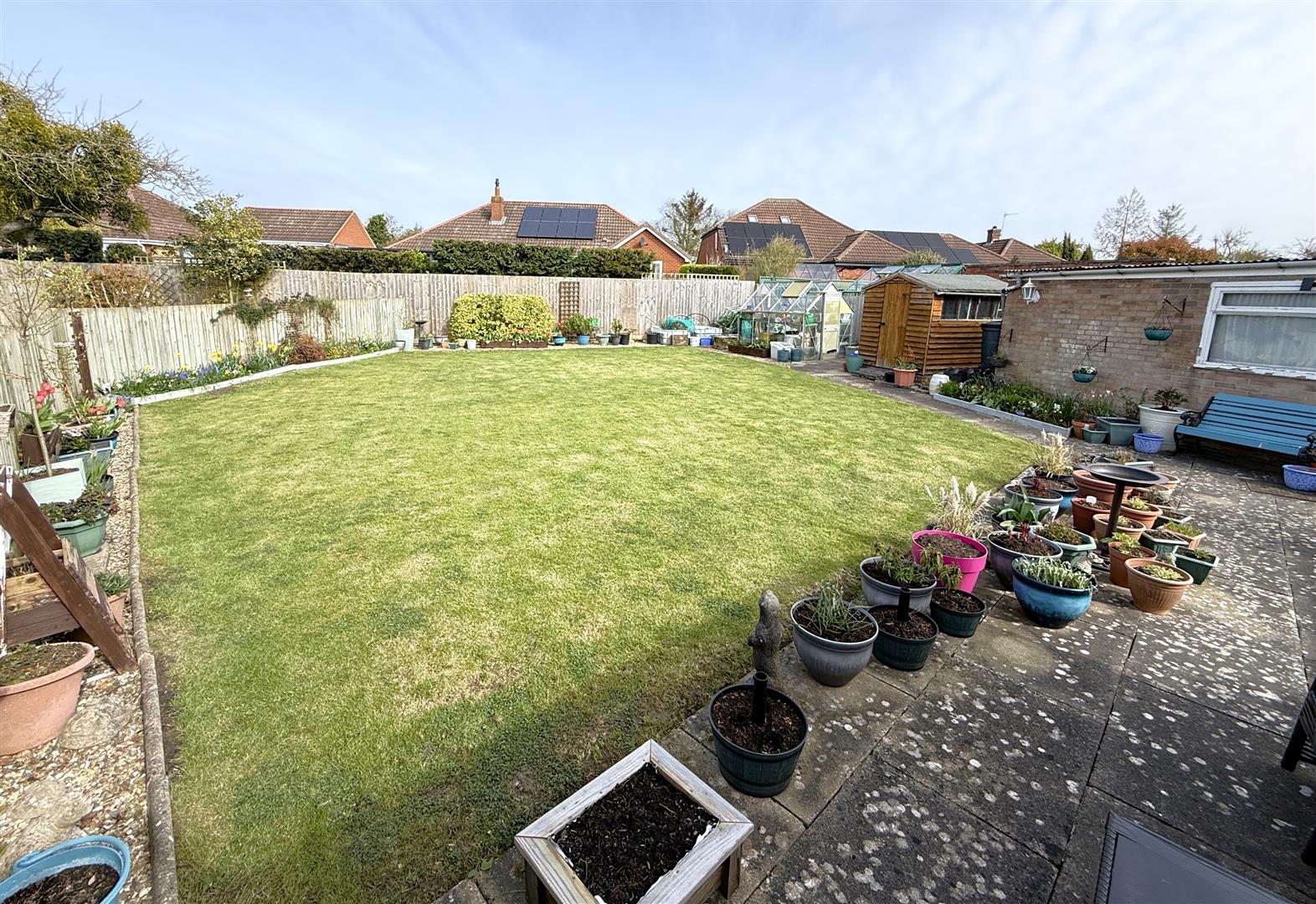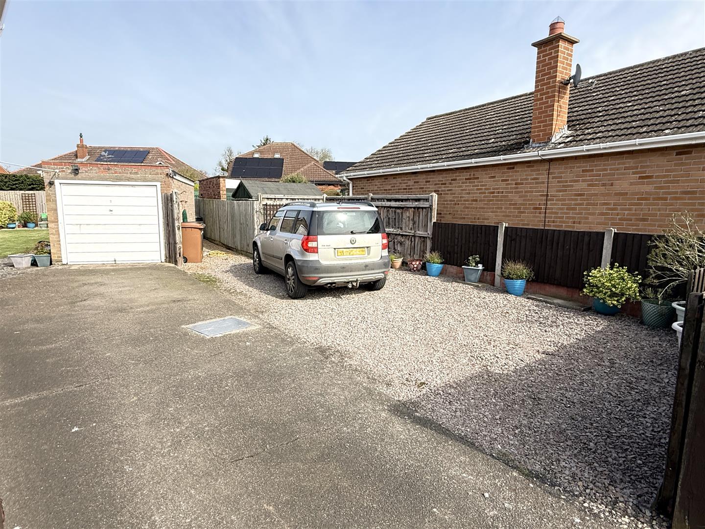 Exterior - The property occupies a pleasant and particularly generous plot for this style of home, set back behind an open plan frontage which is mainly laid to lawn with a pathway leading to the front door. To the side a tarmacadam driveway provides off road car standing to the front and proceeds through a timber gate which in turn gives access to a further considerable level of off road car standing with both tarmacadam and stone chipping parking areas which lead to a detached brick built garage. The rear garden is well maintained and provides a level outdoor space, having an initial paved terrace which leads onto a central lawn with gravelled borders with inset shrubs and also encompasses a useful timber storage shed and greenhouse.