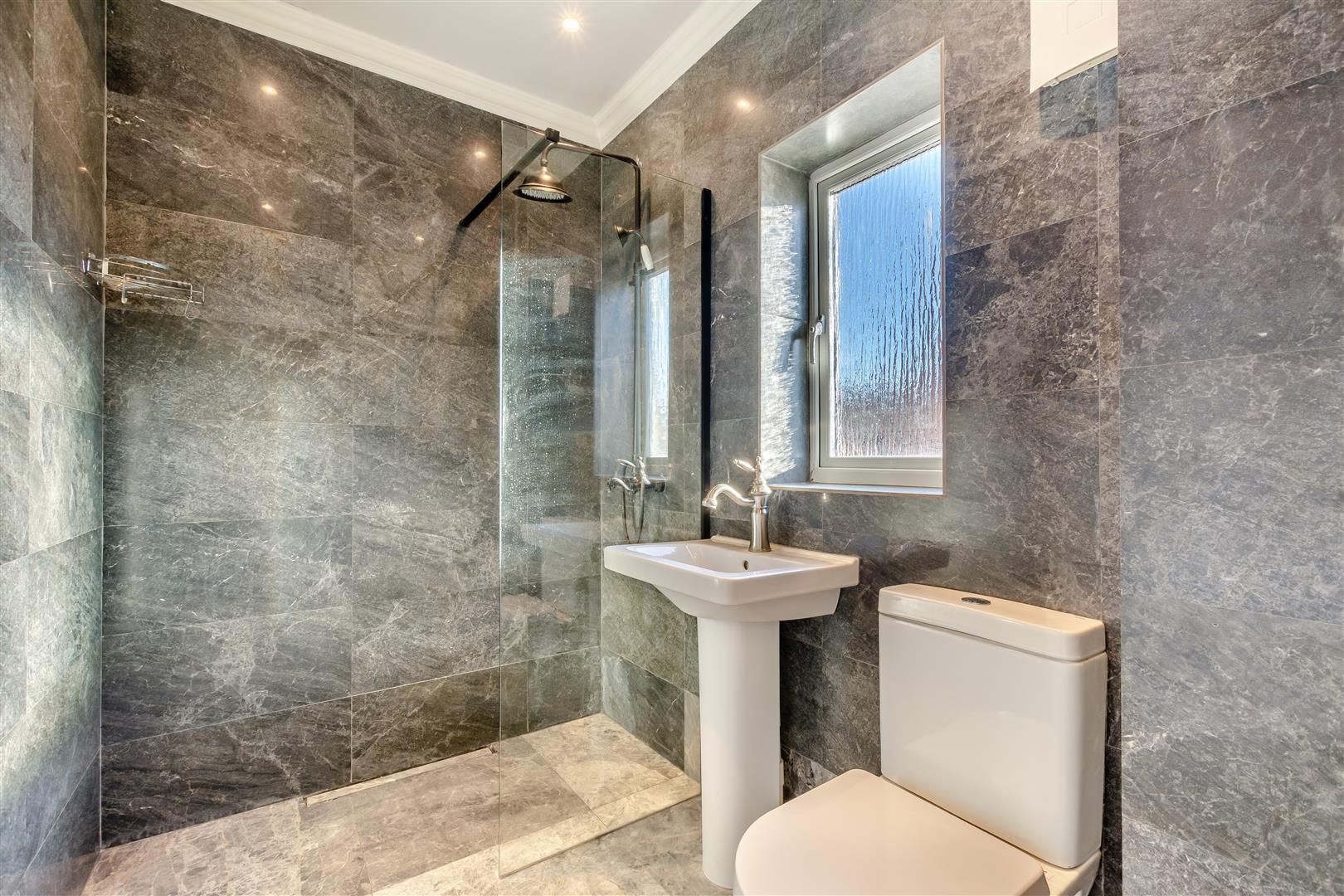 Upstairs, the home offers four generously sized bedrooms. The main bedroom enjoys a stunning ensuite with elegant marble tiles. The remaining bedrooms are served by a luxurious family bathroom, also finished with marble tiles, featuring a double shower, his-and-her sinks, and a charming roll-top bath.