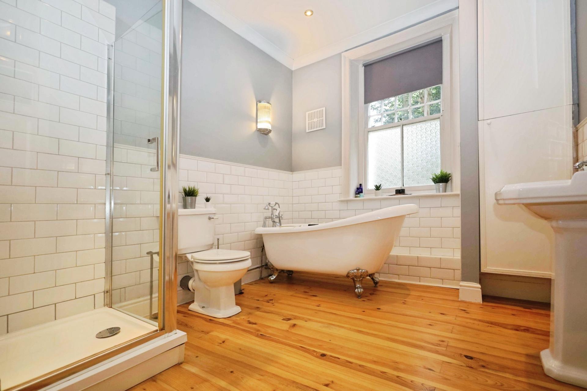- Modern bathroom with roll top bath tub & walk In shower enclosure