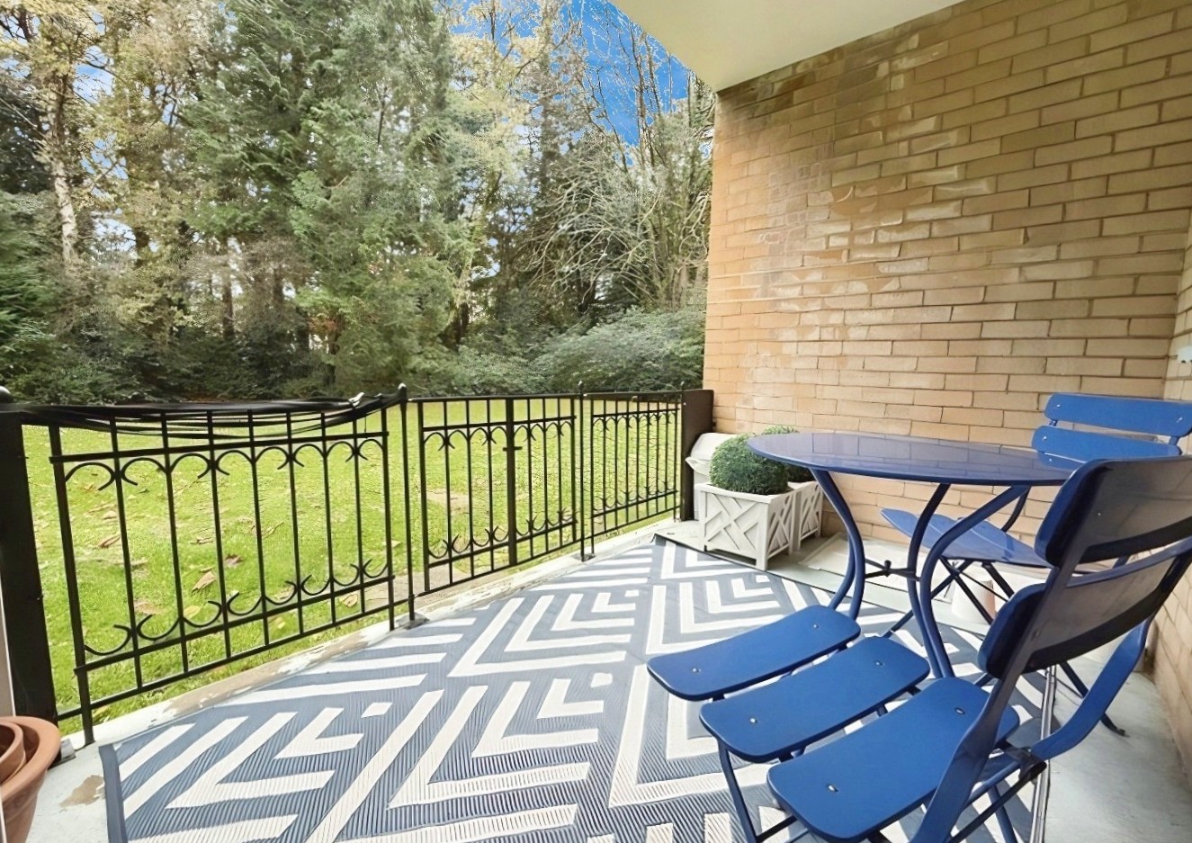 - Private terrace overlooking communal gardens