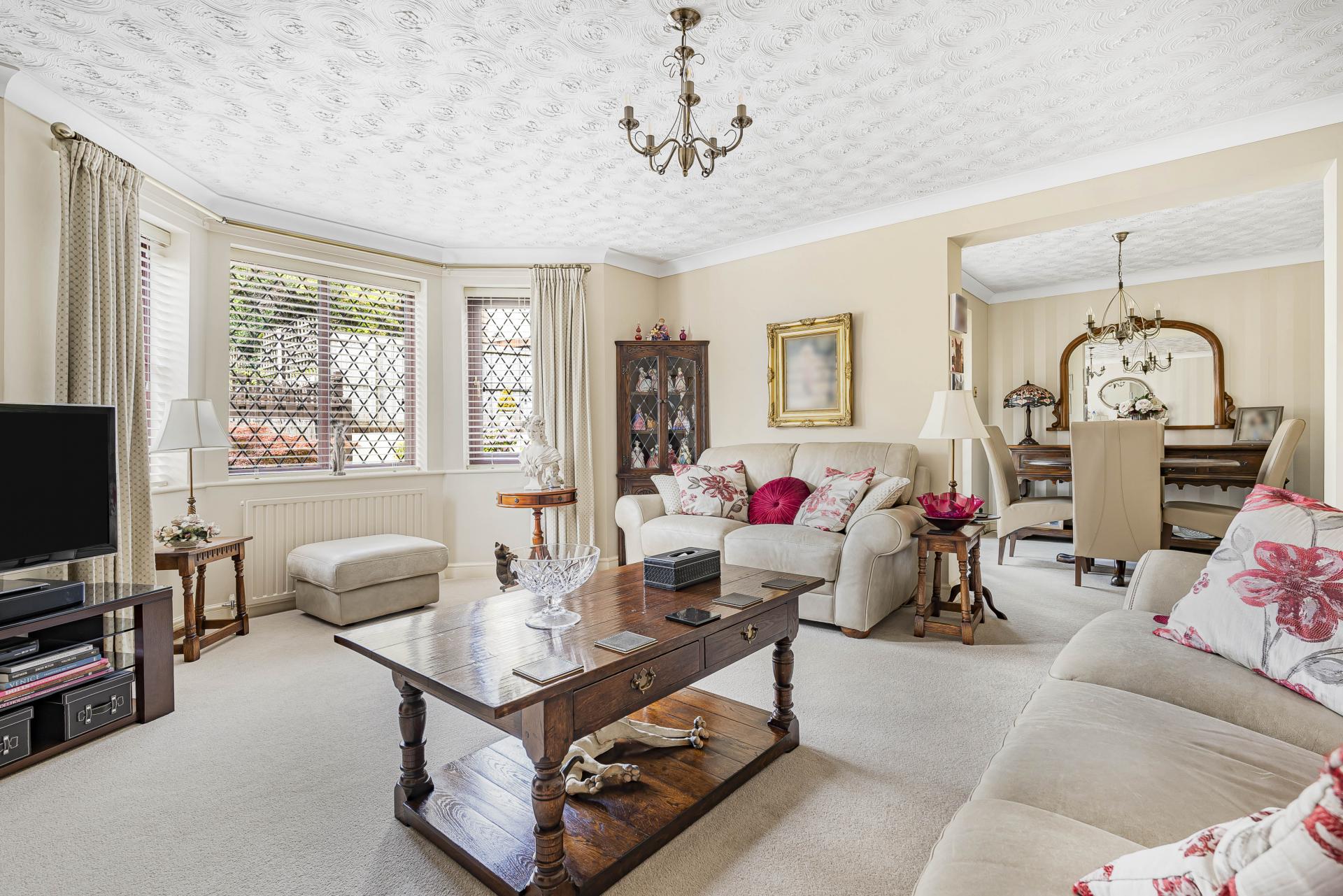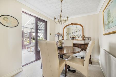 The Living Room is generously proportioned and beautifully styled in soft, neutral décor. An electric feature fireplace with a classic mantelpiece provides a warm focal point, while wonderful Bay windows fill the space with natural light flowing in from the well-maintained rear garden-making it a perfect setting for relaxing or hosting guests. The living room flows seamlessly into the dining room, a bright and elegant space for entertaining on special occasions. Tastefully decorated in neutral tones, this room enjoys a pleasant outlook and opens into the spacious conservatory. The conservatory is situated at the rear of the property and offers lovely views over the garden and double doors that lead out to the patio- ideal for year round enjoyment. Completing the ground floor accommodation is the useful utility room which has been partially converted from the original garage. There is space for a washing machine and tumble dryer and offers direct access into the remainder of the garage along with a side door stepping into the garden.