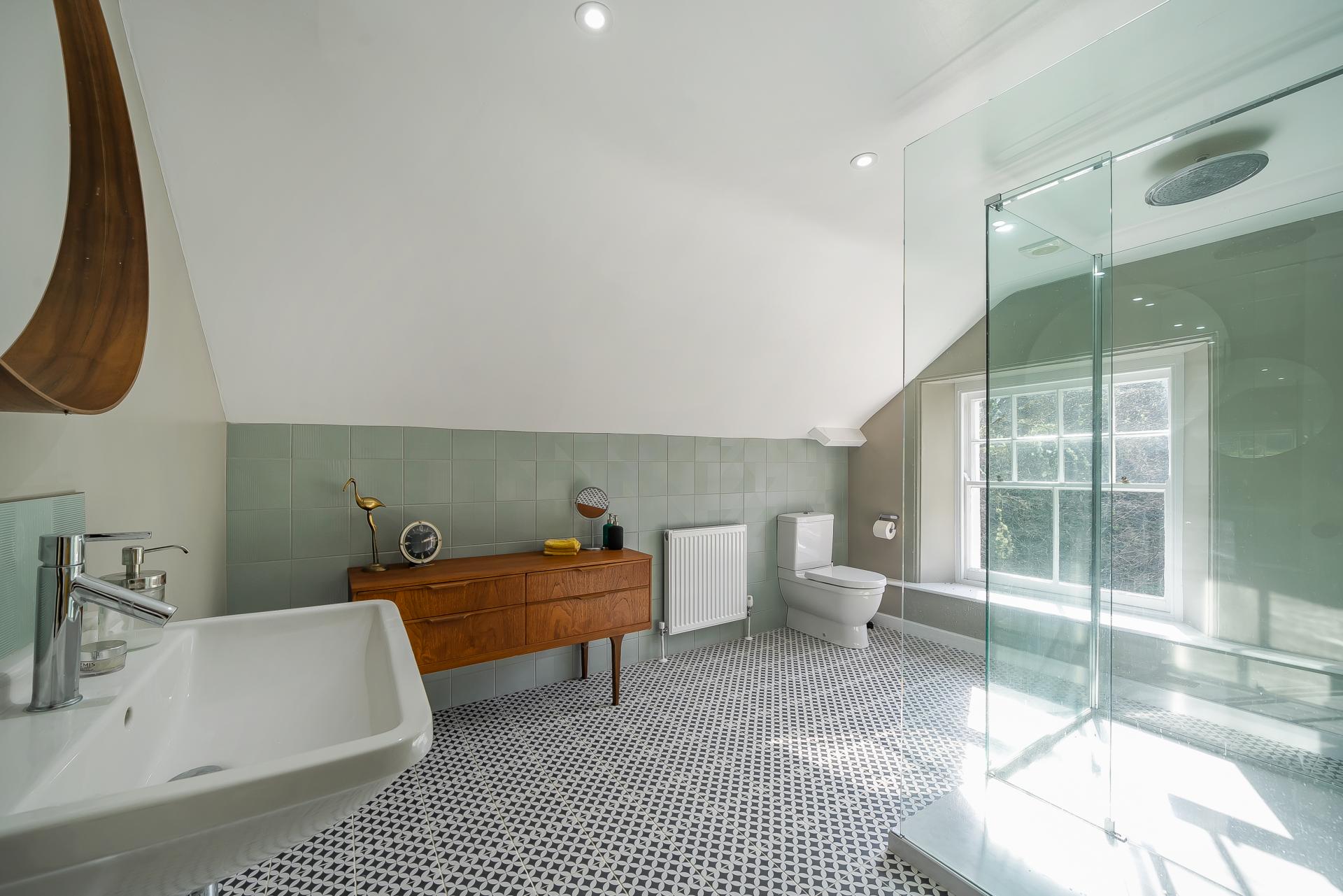On the second floor, the landing leads to the principal bedroom with two floor to ceiling windows, a study or dressing room and a large shower room with a double walk in shower, low level w.c, wall mounted hand basin and towel rail.