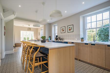 Walk up the front path and appreciate the beautiful façade of this lovely home. The entrance hall has stairs to the first floor and doors to kitchen/breakfast/day room, dining room and sitting room. The kitchen is filled with natural light from two windows overlooking the garden, one having a window seat below and is fitted with two colour base units with worktops over, incorporating a one and half bowl sink with mixer tap above. Appliances include integral oven, hob, dishwasher and space for a fridge freezer. A large island has been created offering storage and two seating areas offering space for informal meals. The dual aspect day area is spacious with plenty of room for a settee and chairs and benefits from a window to the side and french doors with glazed side panels leading out into the garden. A delightful room on a warm sunny day and a fireplace housing a wood burning stove offering a delightful benefit during the winter months. Doors from the rear hallway give access to the utility/boot room, housing the boiler, abundance of storage and a worktop incorporating a sink unit with space under for a washing machine and tumble dryer. The cloakroom is fitted with a w.c. and hand basin. The dining room, elegant and spacious, is ideal for the more formal family meals or entertaining family and friends. The dual aspect sitting room is a delightful room with a tranquil ambiance and views across the garden, also benefitting from a wood burning stove for those chilly evenings.