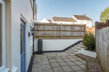 As soon as you walk into the hallway you appreciate the light and open feel to this lovely home, with doors leading to the cloakroom fitted with a w.c. and hand basin, an understairs storage cupboard, the kitchen and living room. The kitchen is fitted with a range of wall and base units with worktops over incorporating a sink with mixer tap above, an integrated double oven, gas hob and extractor over. There are spaces for a washing machine and two other appliances. A door leads to the rear courtyard garden and double doors lead into the dual aspect living room. This delightful light and spacious room is filled with natural light from three windows and offers enough space for sitting and dining areas, with a feature living flame stove set on a slate hearth, making a cosy feature to the room.