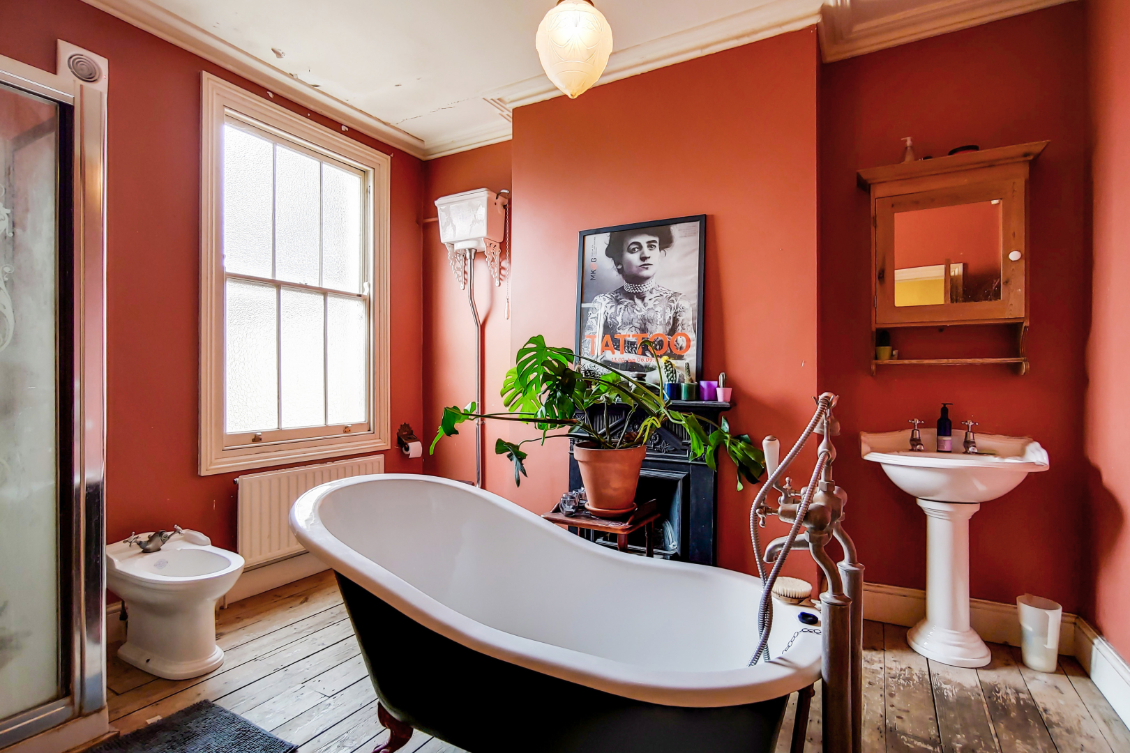 Going up stairs on the half landing there is a double bedroom with fitted wardrobe and en-suite shower room, the first floor landing leads to the large bathroom with a fireplace as well as the front double bedroom complete with wardrobes and a fireplace. Stairs to the bright second floor landing with its large rear facing sash window, providing access to a rear facing double bedroom with a fireplace and finally another front facing double bedroom complete with fitted wardrobes, fireplace and benefiting from being higher up than the 2 story houses opposite so with views across the East London skyline.