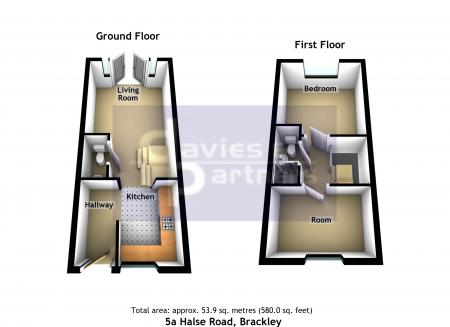 The front door opens into a hallway leading to the kitchen, which is fitted with modern units, a four ring hob, an under counter oven, and space for additional appliances. The living area features casement doors to the courtyard garden and a turning staircase to the first floor, with a useful understairs storage cupboard. A ground floor cloakroom completes the accommodation on this level.
