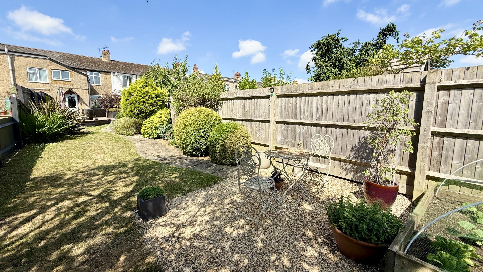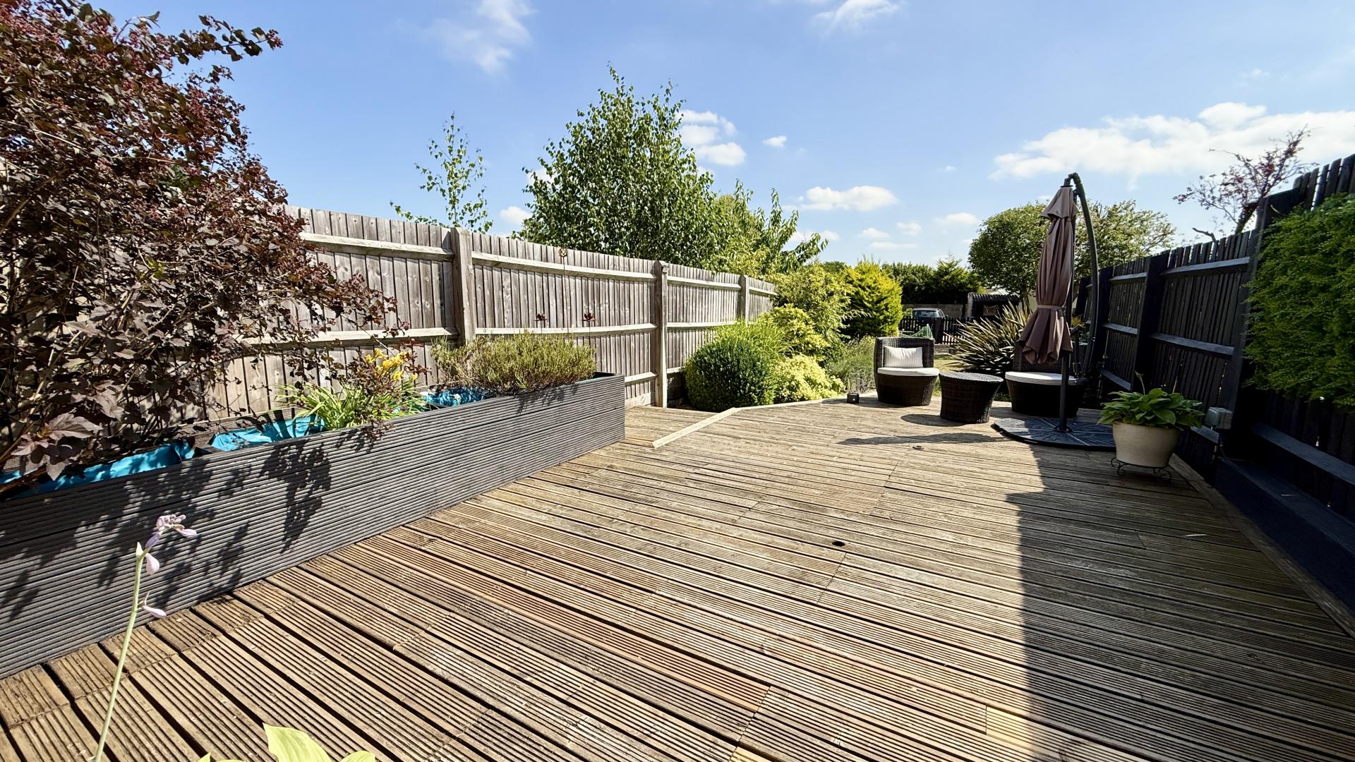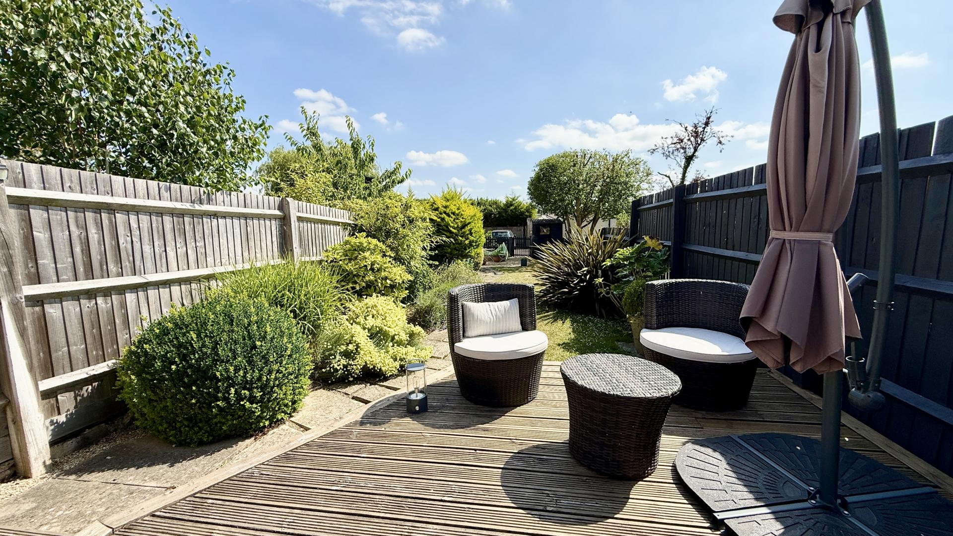Externally, the front of the property includes an enclosed garden with a pathway to the entrance. The rear garden is a notable feature, extending to approximately 36m (118') and mainly laid to lawn with established borders and a large decking area. A separate service road provides access to the driveway and garage/store located at the end of the garden.