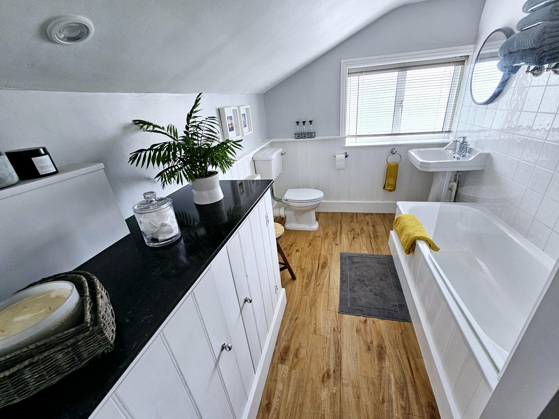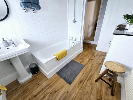 Upstairs, the property offers two generously sized bedrooms and a contemporary three piece white bathroom suite.