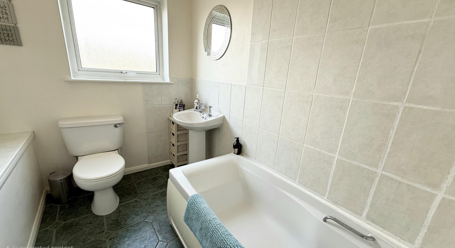 Upstairs there are two well-proportioned bedrooms and a three-piece white bathroom suite.
