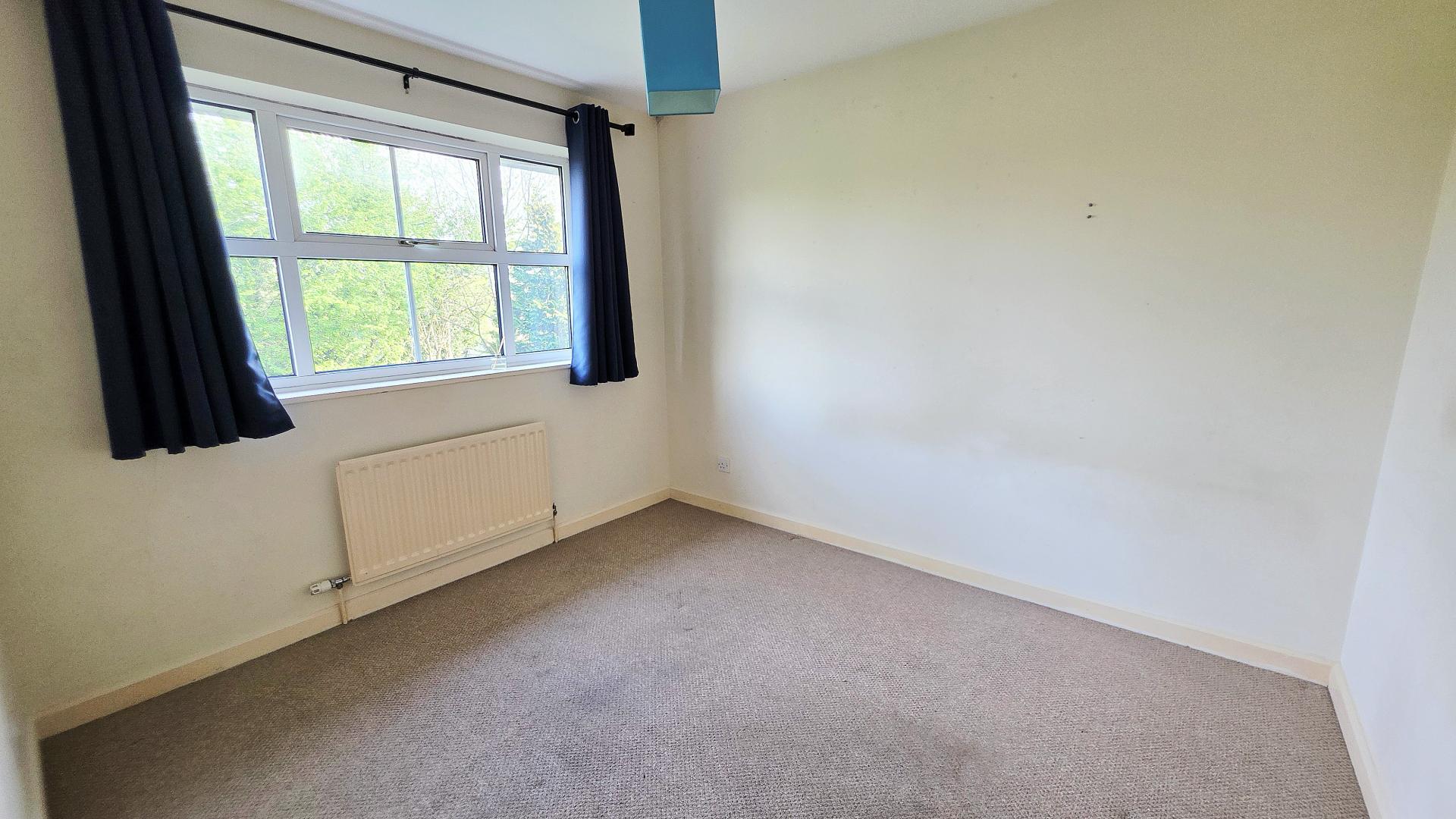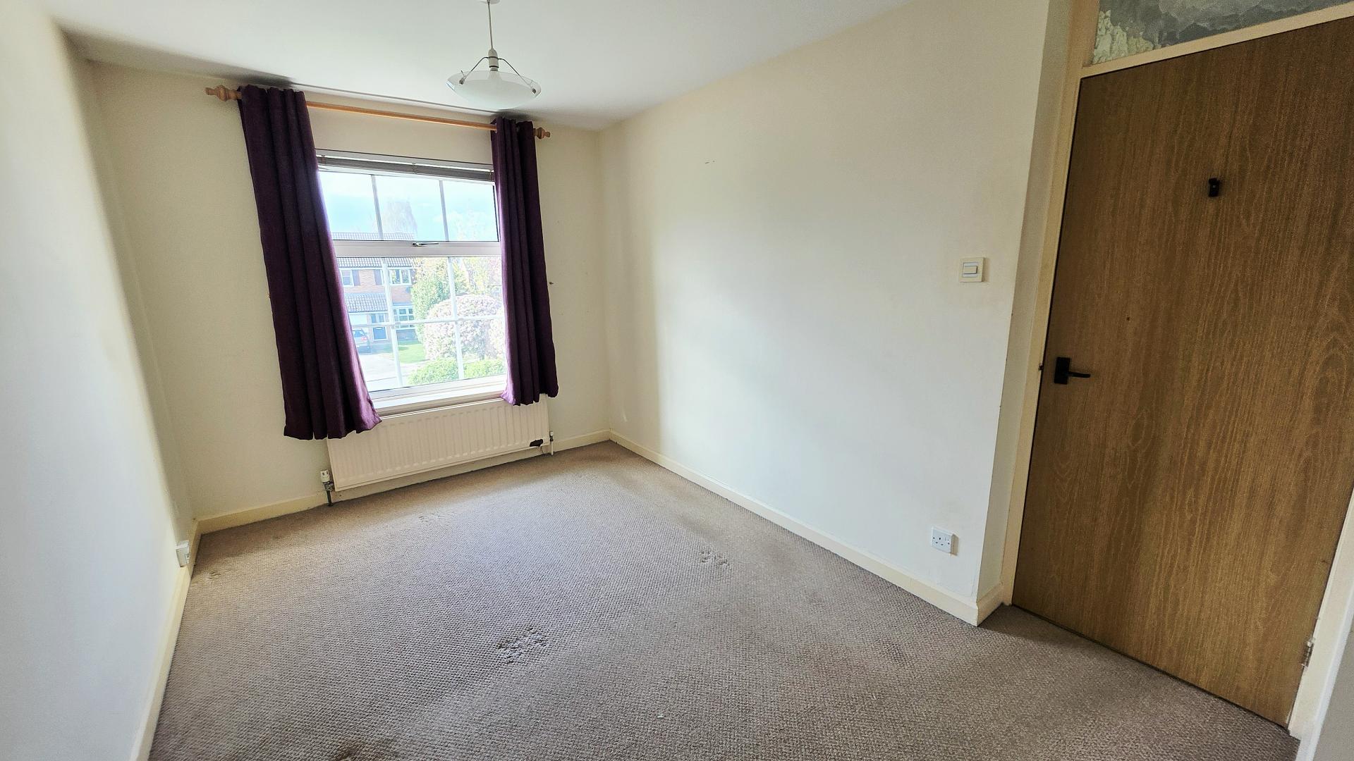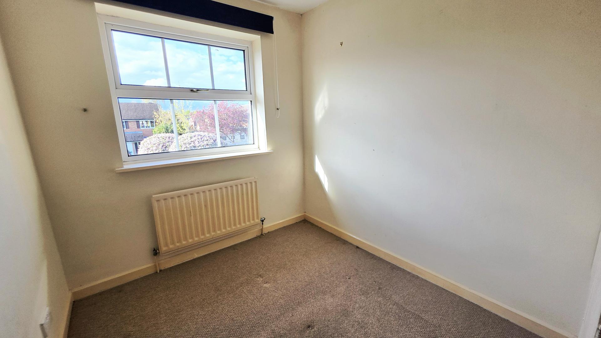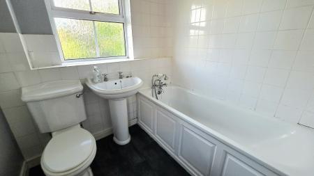 To the first floor are three bedrooms and a bathroom fitted with a three-piece white suite.