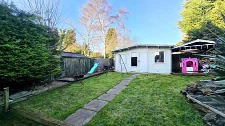 Outside, to the front of the property is a triple width driveway leading to an adjoining garage with light and power connected. The rear garden is of particular note. Offering a high degree of seclusion, the garden incorporates a large and very useful garden/office with power connected and has heaters. The garden is predominately laid to lawn with a paved patio and gated side access.