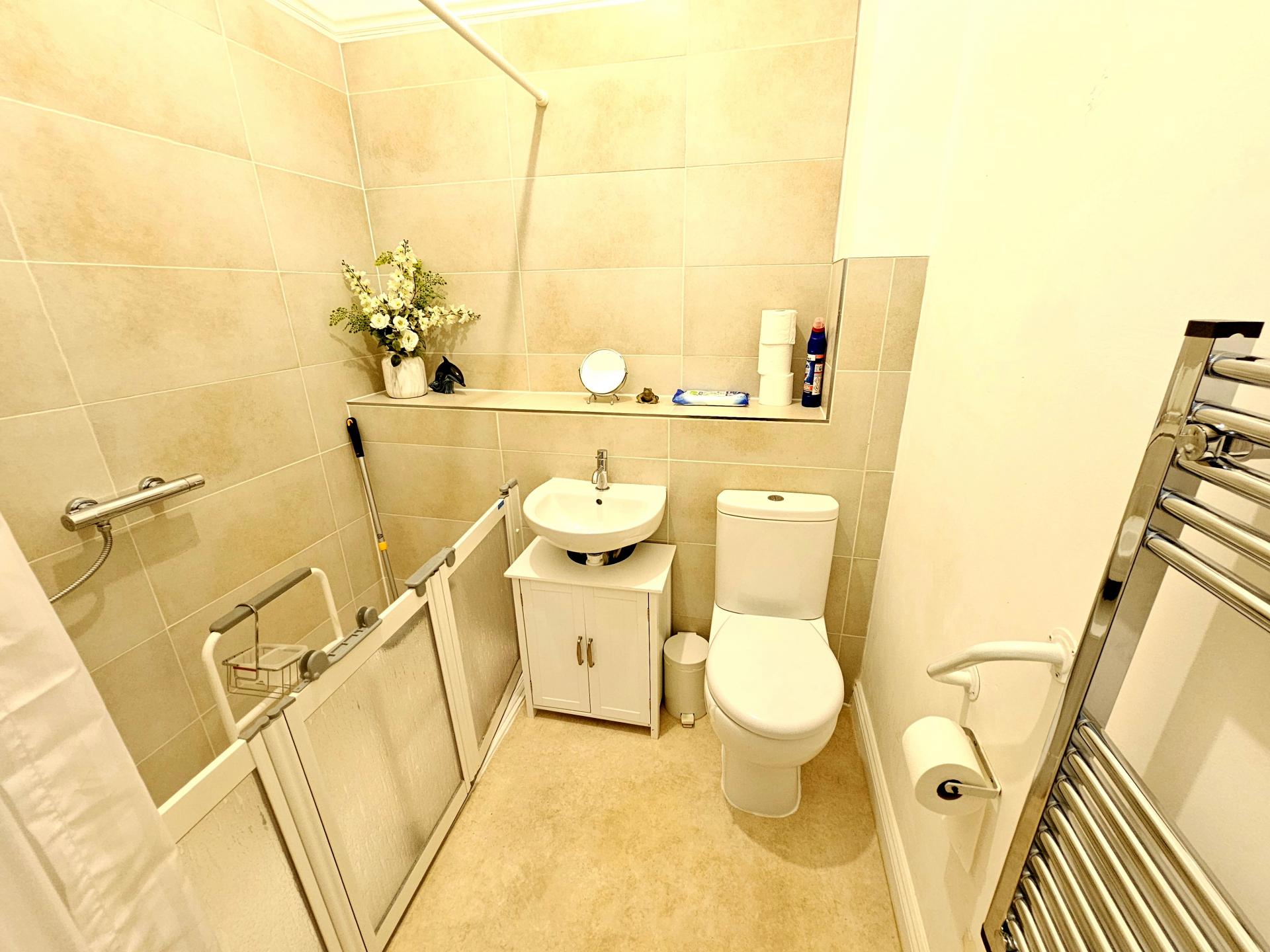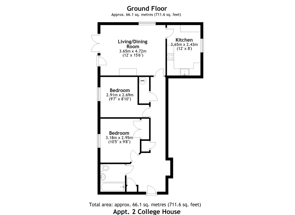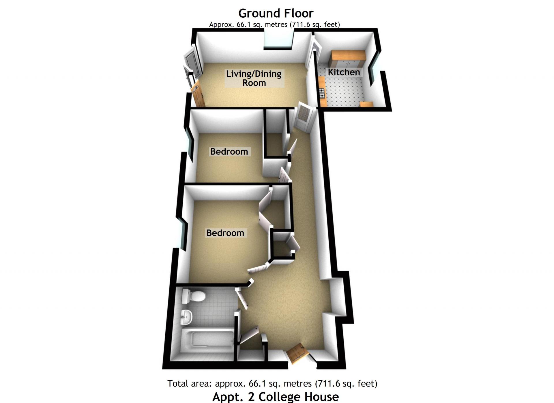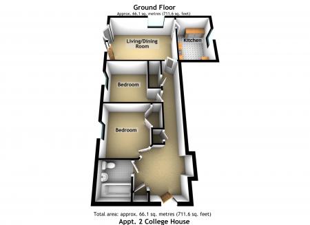 There are two generous size bedrooms; the master has a fitted double wardrobe. The apartment is serviced by a three-piece bathroom suite.
