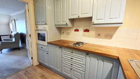 From the communal reception lobby, stairs and lifts rise to all floors. From the apartment's hallway, there a useful storage cupboard and an airing cupboard. Doors lead to the adjoining rooms. The living/dining room has a large glazed window with views of period buildings within the town. The kitchen has a range of matching units, integrated oven and over-counter two ring hob together with spaces for additional appliances.