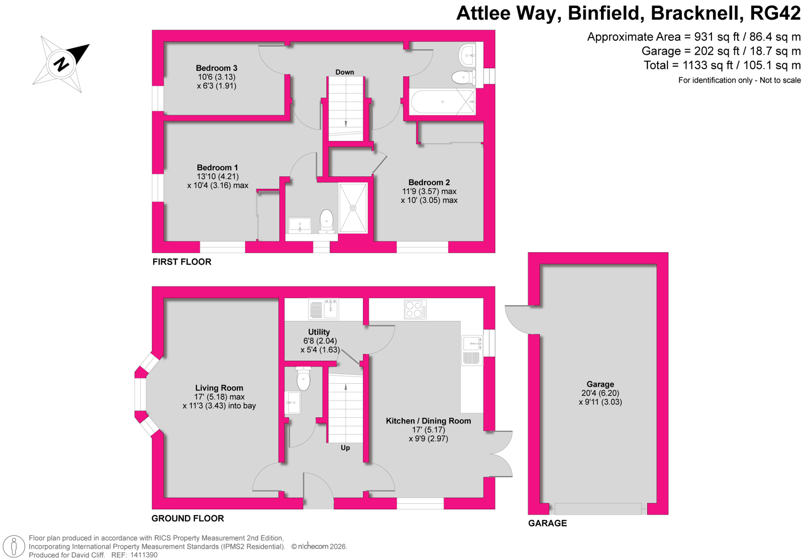 The ground floor boasts a welcoming entrance hall leading to a generous dual aspect living room with a charming bay window, and an open-plan kitchen and dining area ideal for entertaining, with the added benefit of a separate utility room, Double doors seamlessly connect to the enclosed rear garden which has access to the garage and driveway parking.