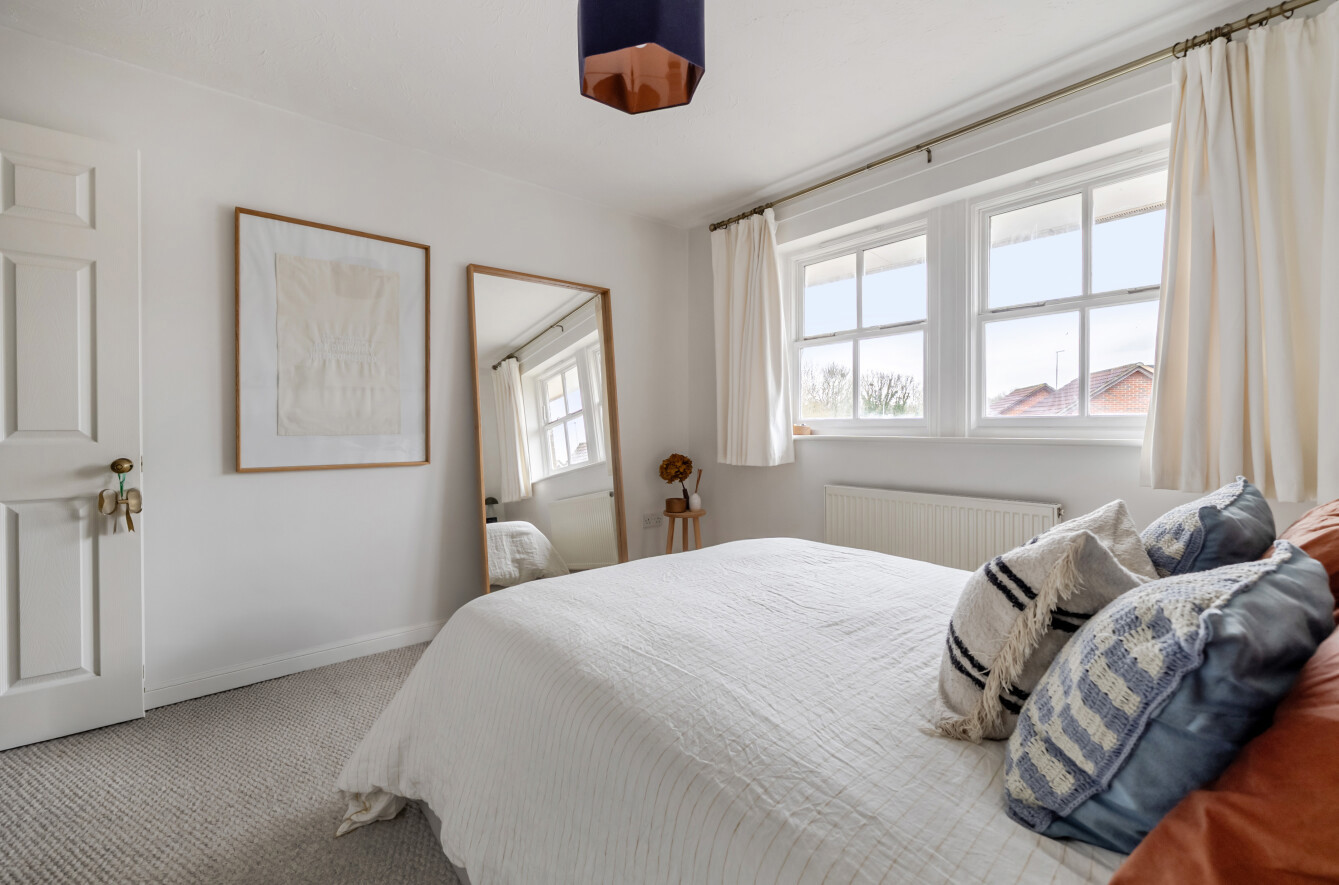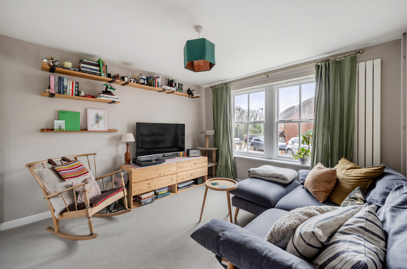 The ground floor features an entrance hall with excellent storage and direct access to the private rear garden. The recently refurbished kitchen has been thoughtfully designed with modern finishes and generous storage, offering both practicality and style. The bright living room enjoys views over the front garden, creating a peaceful sense of privacy, and also benefits from additional front-facing windows that fill the space with natural light.