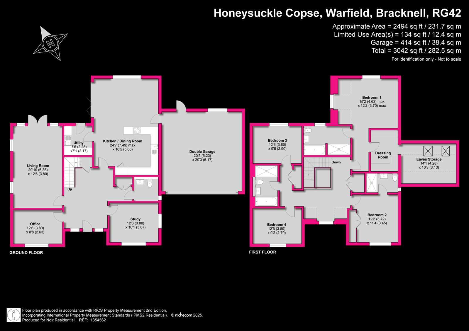 Upstairs has been carefully planned to balance comfort and privacy. The principal suite overlooks the rear garden and features a generous walk in wardrobe leading through to an additional bonus room above the garage for convenient storage, luxurious en suite bathroom, creating a private retreat. The guest bedroom also benefits from fitted wardrobes and its own en suite. Two further double bedrooms are served by a sleek family bathroom.