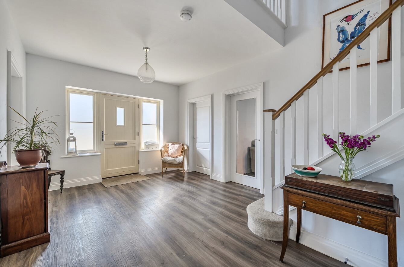 The spacious entrance hall immediately sets the tone with a light, welcoming feel. The property features two reception rooms to the front, perfect for a home offices, playrooms or additional snug.
