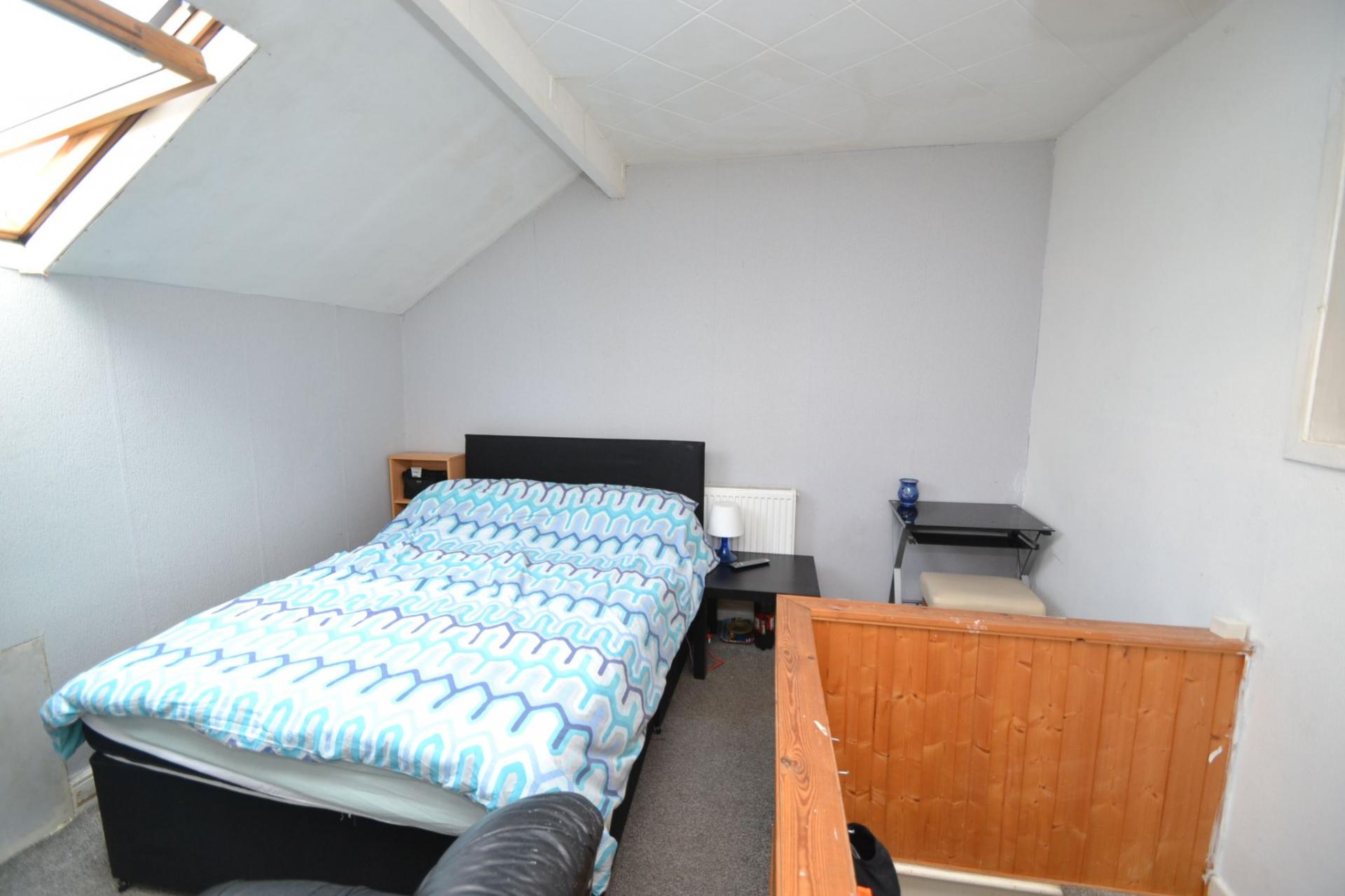 Attic Bedroom 3: 4.2m x 3.4m (13'11 x 11'1). Dg velux skylight window, radiator.