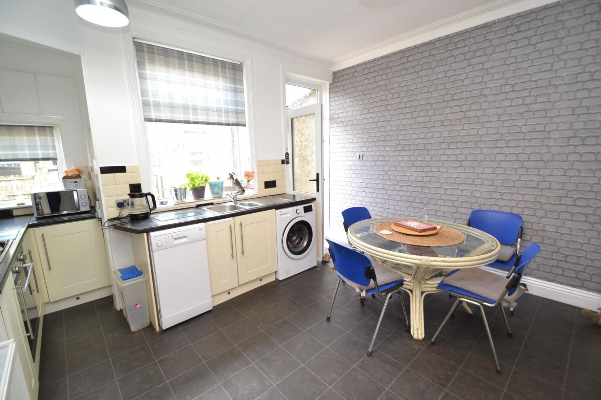 Kitchen Dining Room: 4.2m x 3.8m (13'11 x 12'7). Excellent range of wall & base units, work tops with contrasting brick tiling above, stainless steel extractor over a 4 ring gas hob and electric oven all in stainless steel, plumbed for an auto-washer & slim line dishwasher, space for a tall boy fridge freezer, stainless steel 1.5 sink, radiator, two Upvc dg windows to rear along with a Upvc door, internal door leads to:-