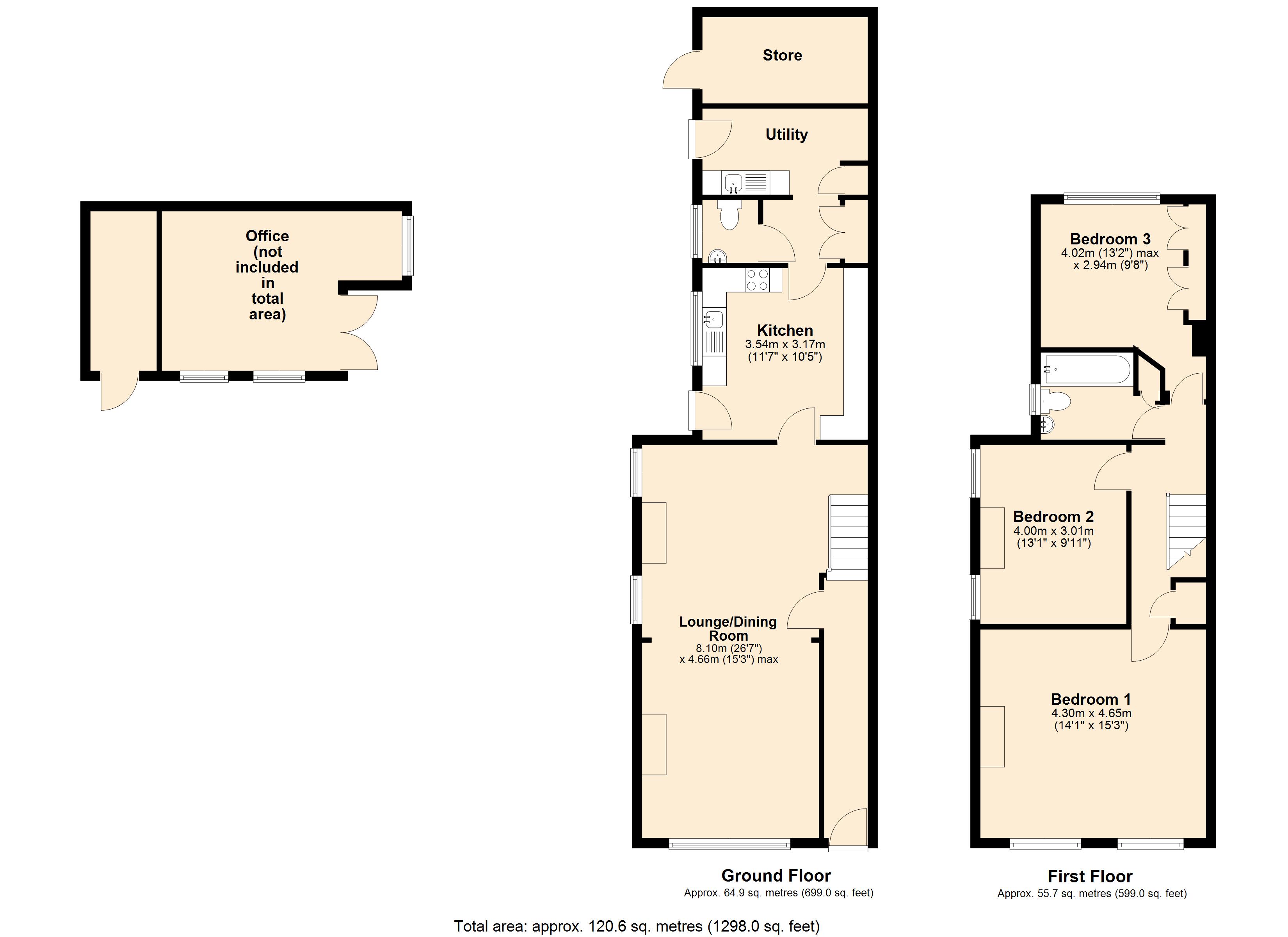 Upstairs, the property features three well-proportioned double bedrooms, providing flexible space for families, guests, or additional work-from-home options.