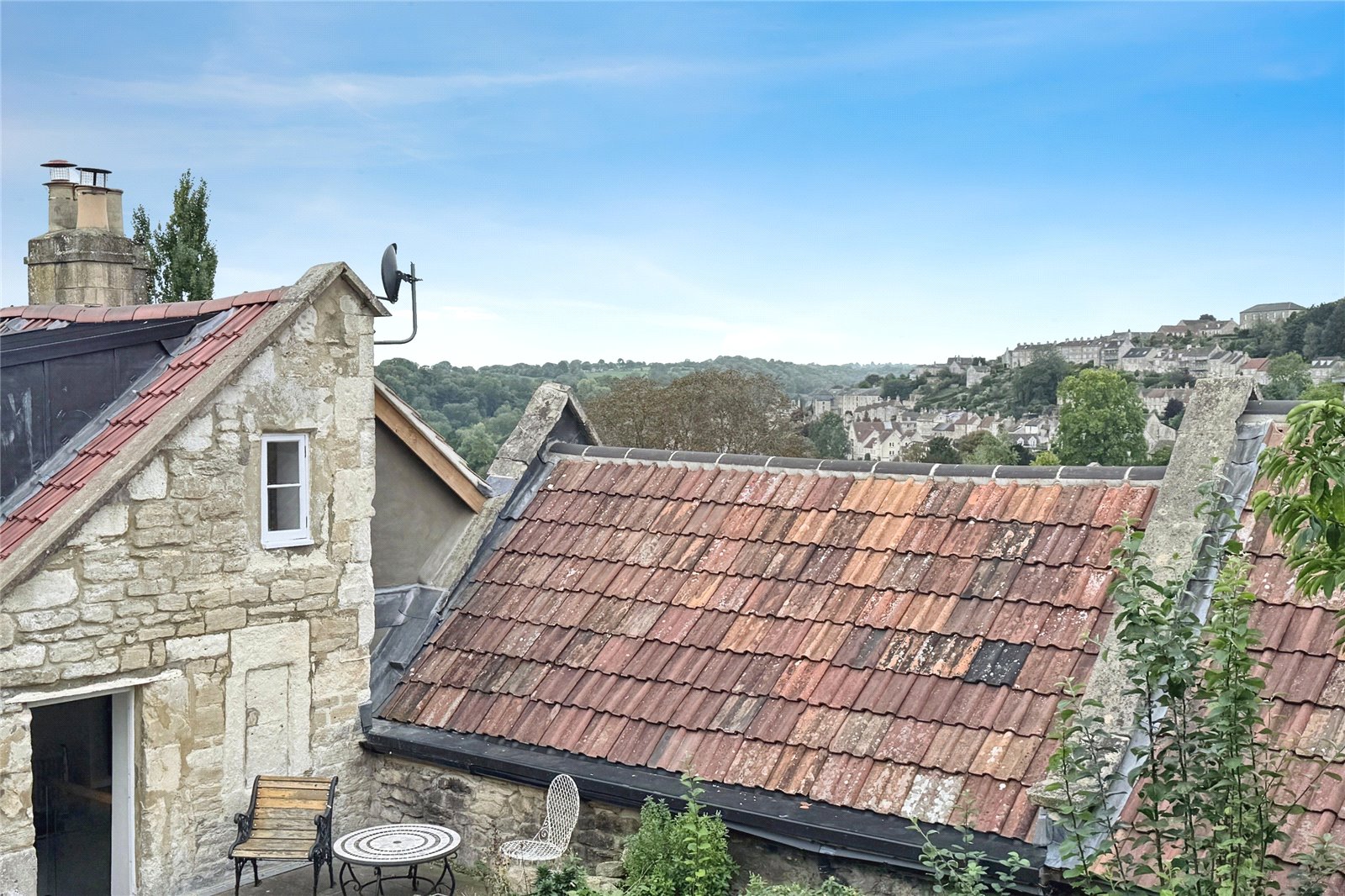 The property boasts wonderful views at the front across Bradford on Avon and beyond, as well as a wonderful hidden gem of a rear garden. This enchanting rear garden is level, mainly laid to lawn, entirely private, and features a pleasant area of patio. Due to its orientation, enjoys fantastic amounts of sun throughout the day. There is also an additional area of courtyard at the rear of the property on the ground floor which offers a useful secure storage area.