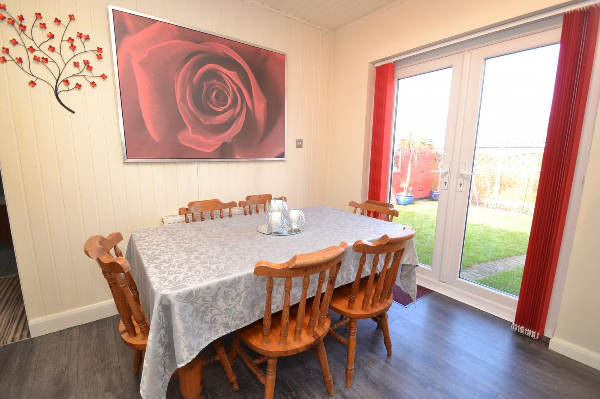 Here we have a superbly presented 2 double bedroom detached bungalow situated in a sought after location. Comprising, front hallway, good size lounge with feature fireplace, open plan extensive fitted kitchen dining room with granite work tops, rear French Upvc dg doors, 2 double bedrooms, bathroom with separate shower cubicle. Benefitting from Upvc dg windows, gch, externally level gardens to the front & rear, block driveway leads to a slightly restricted access to the detached garage suitable for a small family car, summerhouse/potting shed. Overall this is a property being rare to market of this standing, and we do not expect this lovely home to be on the market too long.