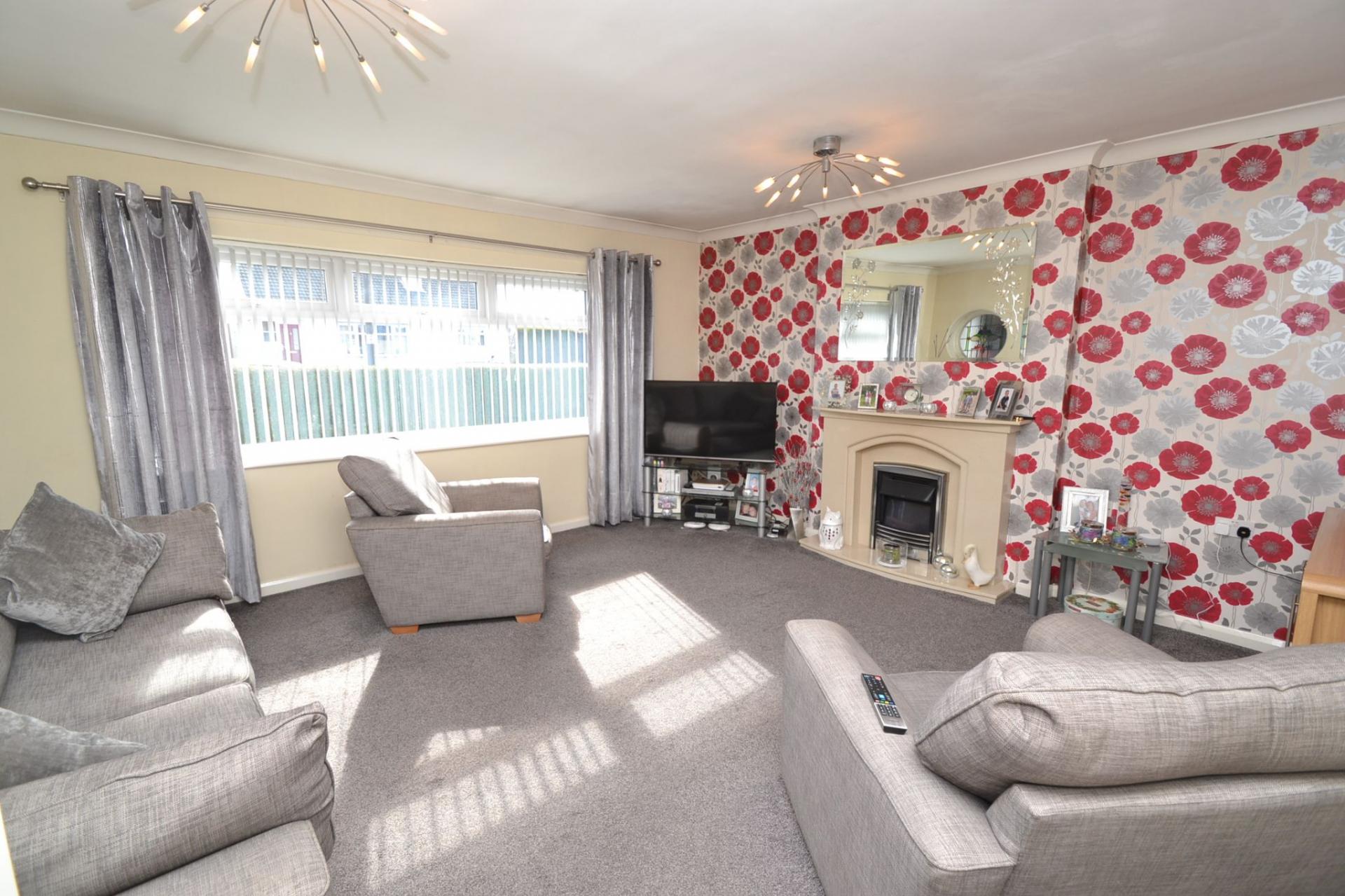 Lounge: 4.84m x 4.56m (15'8 x 14'9). Upvc dg window to front with fitted blind, coving, marble fireplace surround with an enclosed electric coal effect fire, radiator.