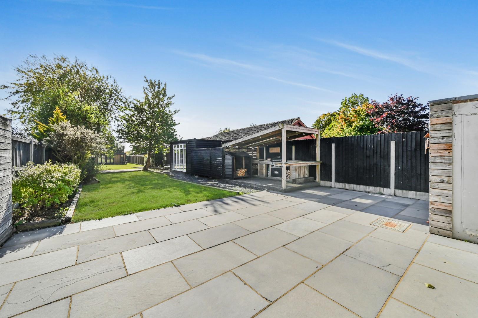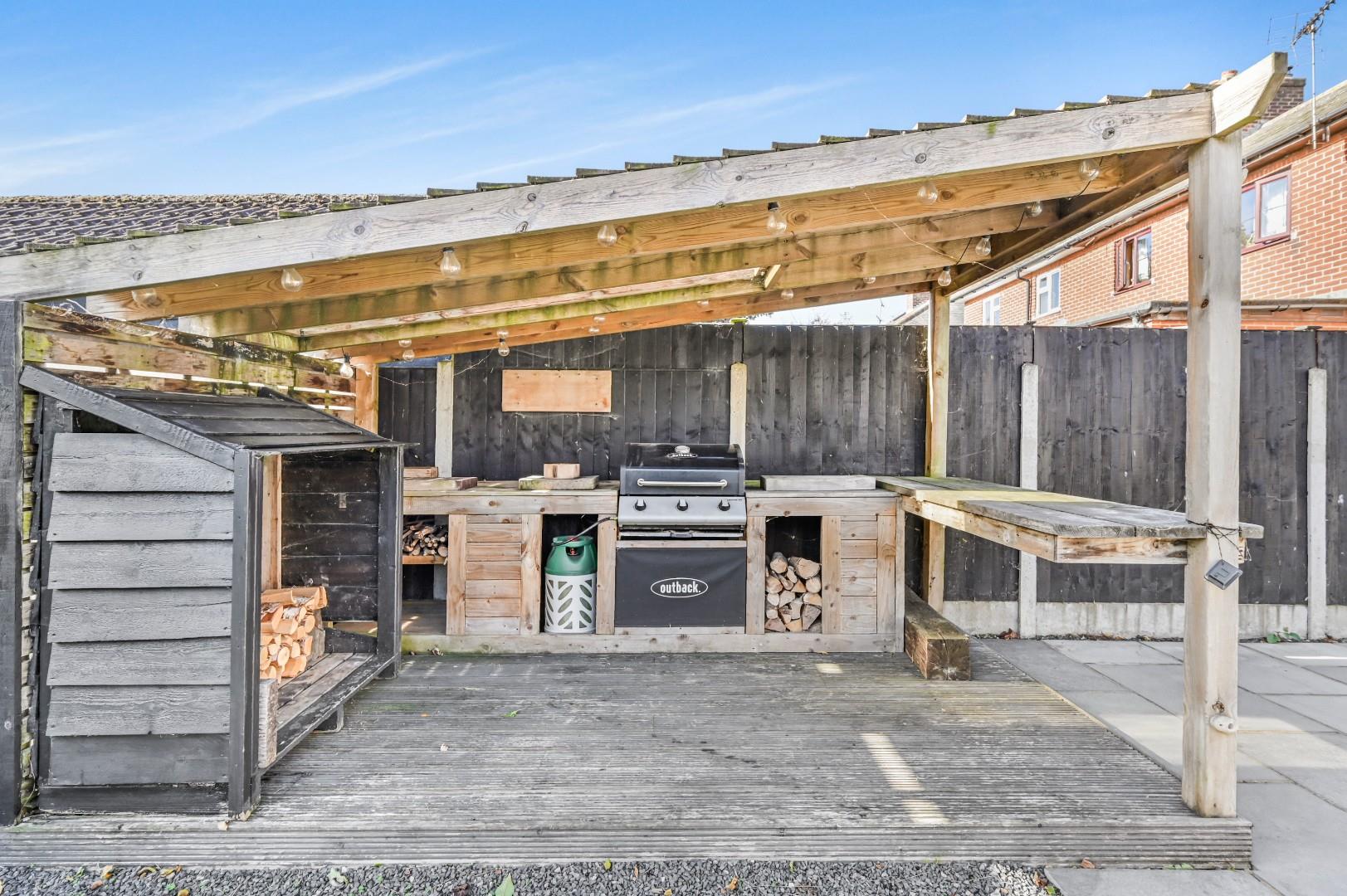 Garden - To the rear of the property is a wraparound patio area leading to the remainder lawn with a variety of mature shrubs and trees. A shingle pathway leads the covered kitchen and BBQ area with breakfast bar area. The shingle pathway continues to the home office and a timber shed. To the foot of the garden is a secondary patio area in front of the Gym and an additional shed.