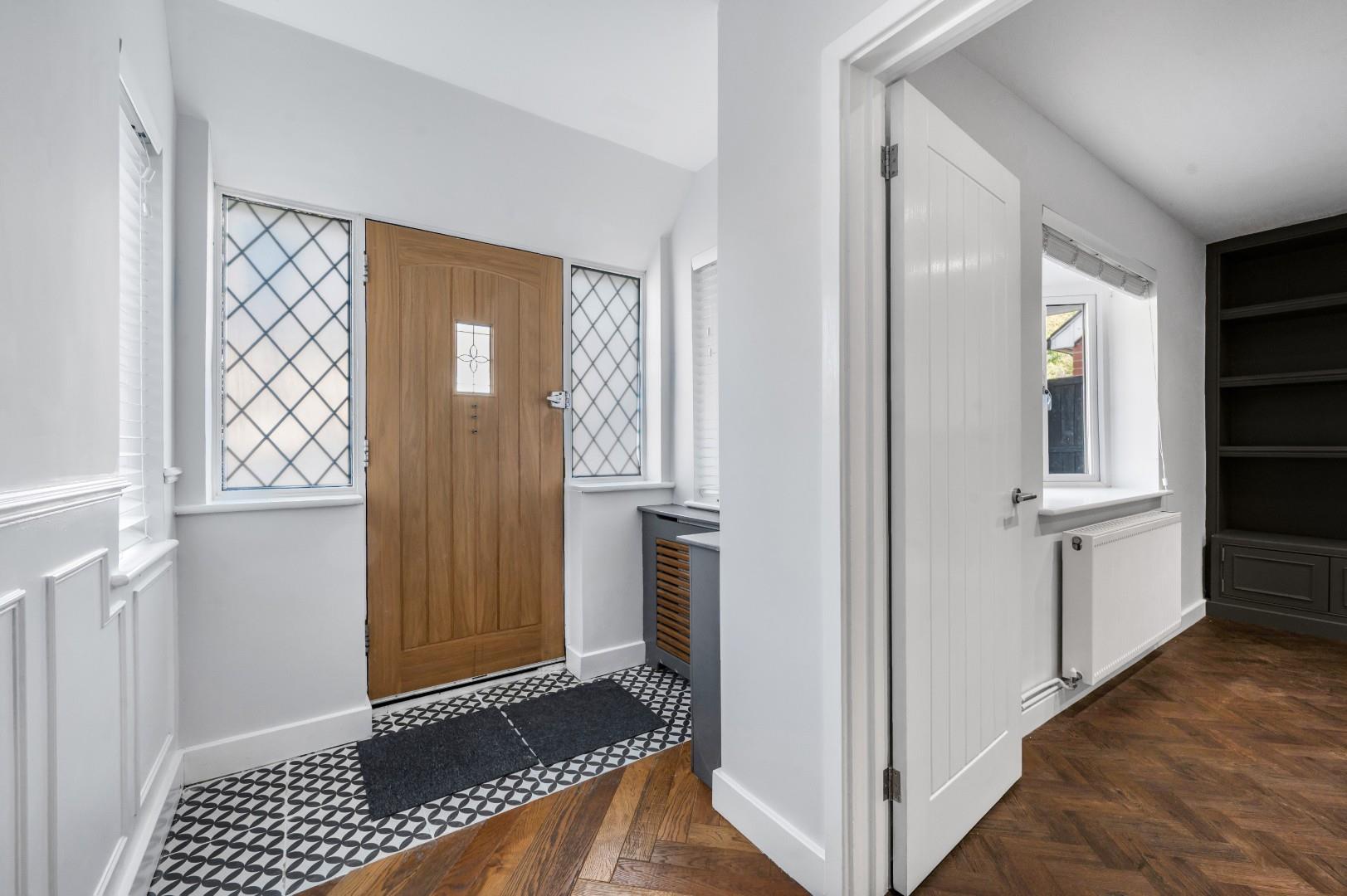 Entrance Hall - Accessed via solid Oak front door, Leaded windows to front aspect, UPVC double glazed windows to multiple aspects, part herringbone style oak flooring, part tiled flooring, power points, stairs rising to the first floor landing, door to.
