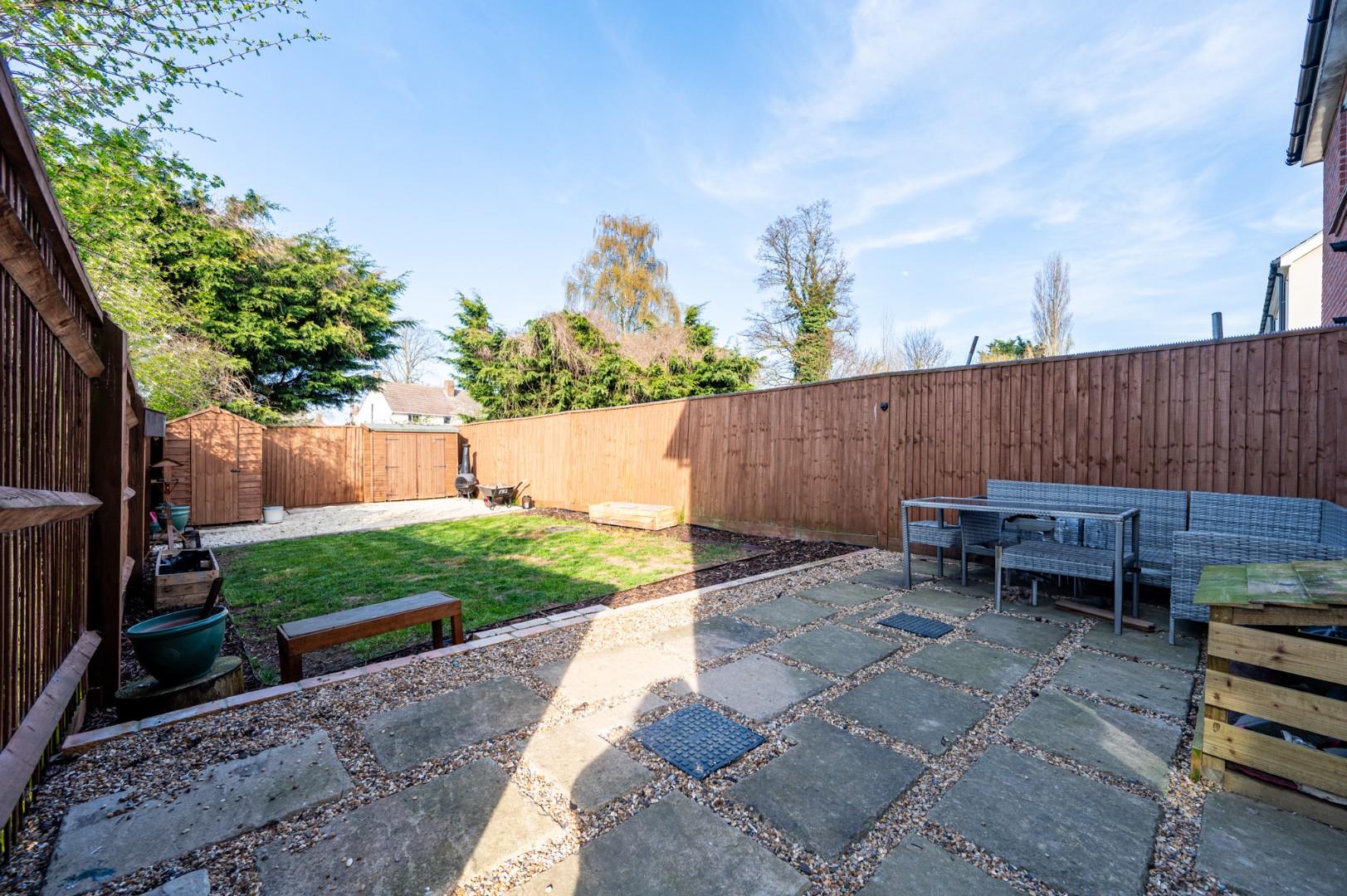 Secluded Rear Garden - The rear garden is made up of a patio area directly to outside the kitchen door great for entertaining with the remainder made up of laid lawn. There is a stoned area at the foot of the garden with two timber sheds.