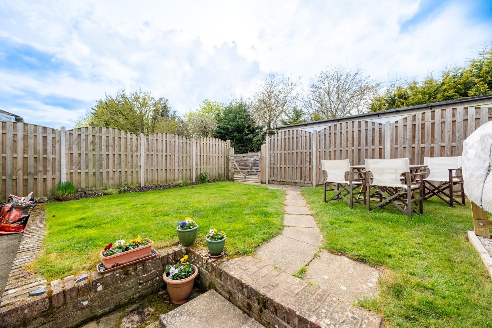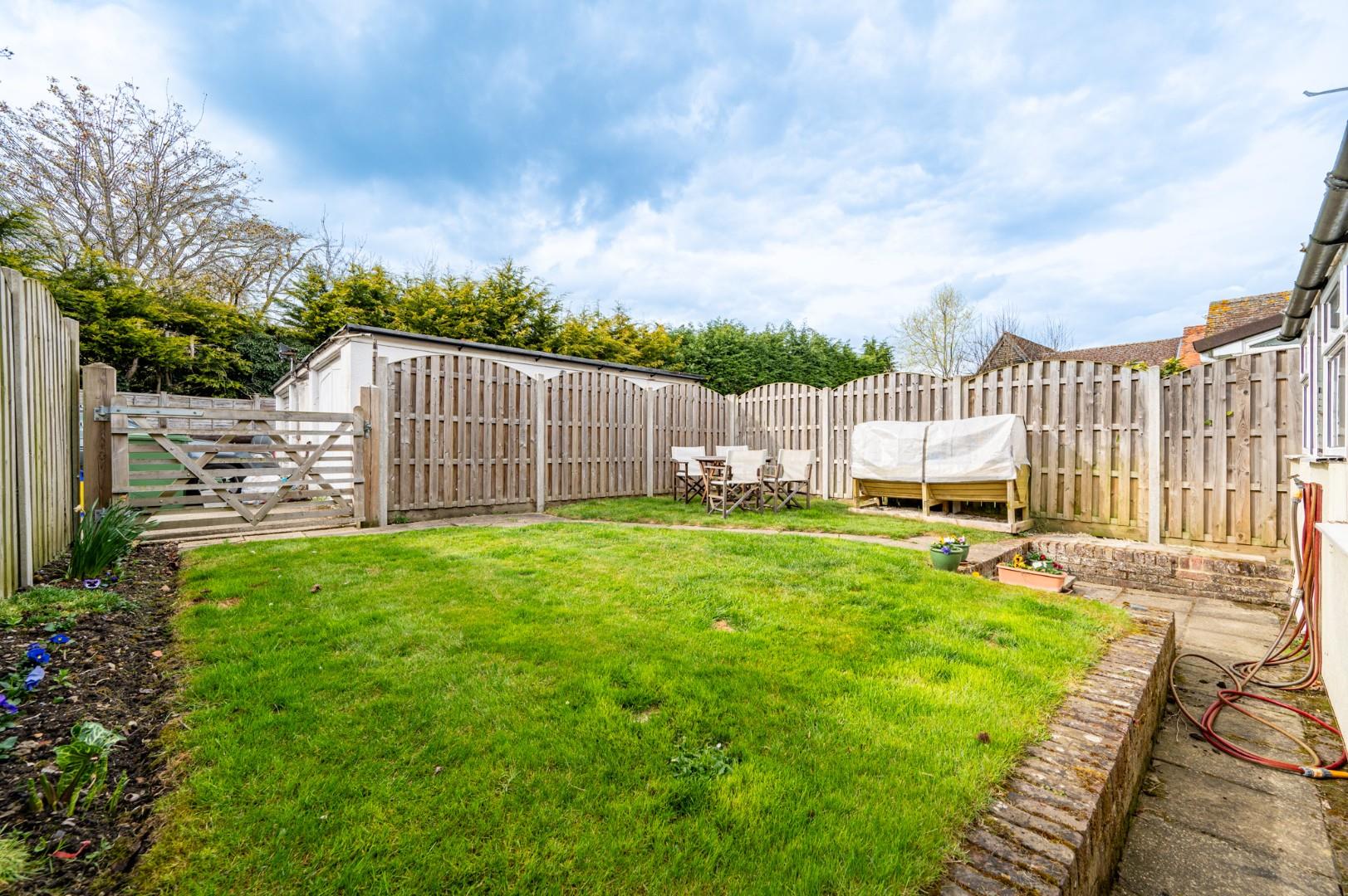 Secluded Rear Garden - The rear garden is mainly lawn with a timber gate granting access to the driveway and garage.